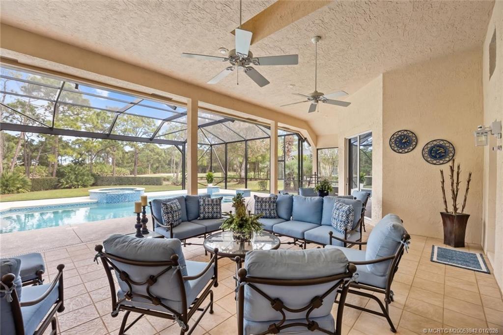A true golfer’s paradise, perfectly positioned on the 5th hole of the Ryder Course in prestigious PGA Village. Located in the desirable Reserve Plantation, this timeless residence embodies classic elegance with soaring ceilings, two spacious primary suites, and an office featuring rich custom wood built-ins with desk, cabinetry, and bookshelves. Meticulously cared for, the home offers a newer pool (2023) with cabana bath, creating an exceptional indoor-outdoor lifestyle. Get lost on the expansive pool deck with generous seating areas overlooking the manicured fairway. The kitchen is equipped with a Bosch wall oven, built-in microwave, and range. Additional upgrades include a brand-new A/C system, along with a roof and gutters replaced in 2020. Furniture is available for purchase, presenting an outstanding opportunity for a turnkey, golf course retreat. For optional PGA Village golf membership please see https://pgavillage.com/ for more details.