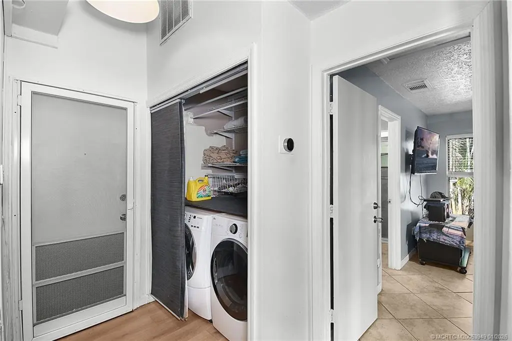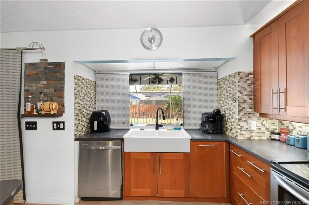 Welcome home to this charming and well-maintained family residence offering 3 bedrooms, 2 full bathrooms, and a 2-car garage, all set on a quiet street close to shopping and dining. Step inside to vaulted ceilings and an open-concept layout that seamlessly connects the living room, kitchen, and dining area—perfect for both everyday living and entertaining. The kitchen features attractive cabinetry, a tile backsplash, a deep farmhouse-style sink, creating a functional and inviting space. Sliding doors lead you outdoors to a covered patio and screened-in pool area, complete with a hot tub that conveys with the sale, making this backyard a true retreat. Enjoy a spacious, fully fenced backyard with a storage shed for added convenience. Additional highlights include accordion storm shutters, two driveways with ample boat/RV parking, and a new washer and dryer. This home offers comfort, functionality, and lifestyle—don’t miss the opportunity to make it yours.