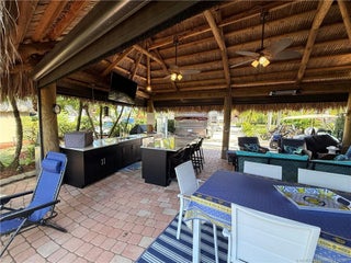 Located on the large lake with double fountains, this is truly one of the most exceptional lots in the resort. A breathtaking double-waterfall pond on property creates a serene, resort-style backdrop and serves as the property’s stunning focal point. Spanning an expansive 3,499 square feet, this lot offers multiple, thoughtfully designed entertaining spaces—perfect for both lively gatherings and quiet relaxation. The oversized tiki hut is equipped with remote-controlled screens, allowing for effortless comfort and seamless indoor-outdoor living in any weather. A large bar with generous seating anchors the space, creating the ultimate setting for hosting. The built-in outdoor kitchen blends style and function with upgraded cabinetry, a wine refrigerator, built-in oven, and ample counter space Recently refreshed landscaping and low-voltage lighting enhance the lush surroundings, while illuminated water features provide a striking ambiance from day into evening.