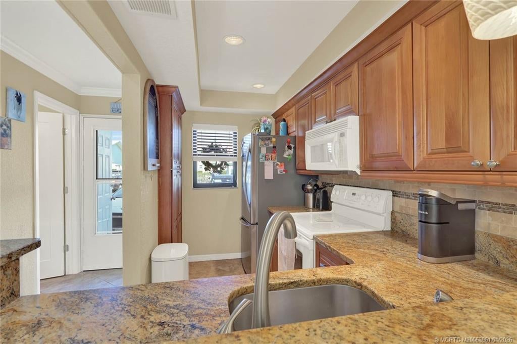 This beautiful 2 bedroom, 1.5 bath townhome in Island Village boasts southern exposure and direct beach access through Ocean Towers. The property has been tastefully updated and comes turn key fully furnished, featuring an open-plan kitchen with granite countertops and crown molding. Enjoy the private, fenced patio and take advantage of the community's fantastic amenities, everything you need is already there including a heated pool, tennis court with pickleball and clubhouse. Pets are welcome, up to 2 dogs at 20lbs each.