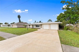 Welcome to this charming, beautifully renovated concrete block home that perfectly blends classic Florida charm with modern upgrades. This move-in ready home offers flexibility, durability, and peace of mind. This home features 2 spacious bedrooms with original cedar closets, and 2 full bathrooms, with a possible 3rd bedroom thanks to a versatile Florida room that includes a closet — ideal for guests, a home office, or extra living space. Major improvements have already been taken care of, including a brand NEW roof, impact windows, and a new water heater. Inside, you’ll love the low-maintenance vinyl flooring throughout, along with renovated kitchen and bathrooms that give the home a fresh, modern feel. The oversized 2-car garage provides plenty of storage and parking. Perfect for first-time buyers, seasonal residents, or investors. This home checks all the boxes with its updates, layout flexibility, and prime location.