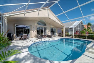 Ballantrae Pool Home with NEW ROOF, custom kitchen, new flooring, tons of upgrades with large, screened lanai. Ballantrae Community offers a Jack Nicklaus Signature Golf Course and a 67 slip Marina with slips available for sale or lease. Golf and Social Memberships are available but not mandatory. Community is close to Beaches, restaurants, and shopping.