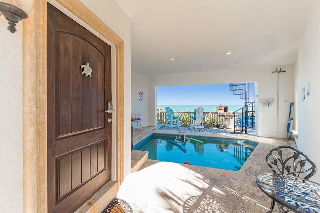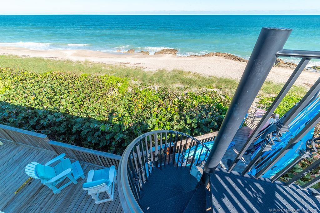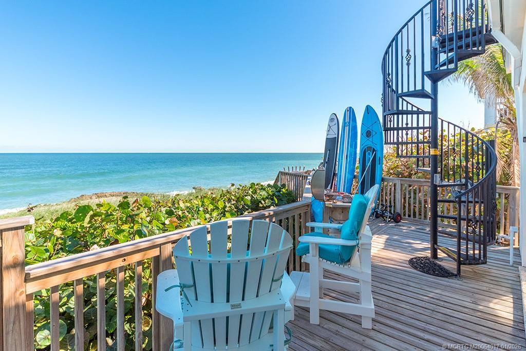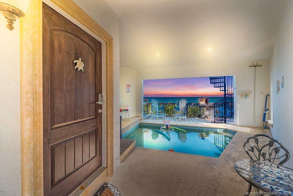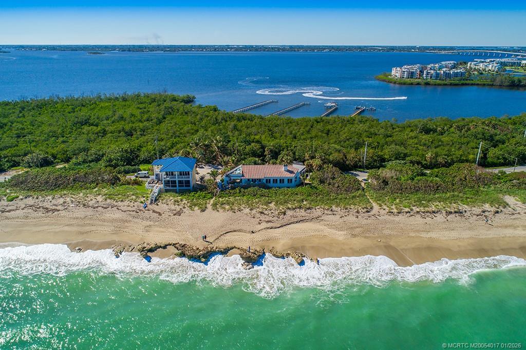 La Dolce Vita or The Sweet Life. is an impeccable ocean-to-river estate, perfectly designed for the consummate water lover. This CBS construction home features impact windows and doors, an elevator, heated swimming pool a rooftop sundeck and an ocean front leisure relaxation deck. The Home has been meticulously maintained throughout. The spacious chef's kitchen has double ovens with plenty of counter space and abundant cabinetry. The dining area is perfectly situated for entertaining large gatherings, showcasing breathtaking views of the Atlantic Ocean. The primary bedroom is a private retreat, highlighted by exquisite ocean views that greet you every morning. Over 100' feet on the ocean and river. A deep water dock with two lifts, a floating platform, kayak and paddleboard launch area and convenient access to fuel at the near by Marriott Marina. Located a few miles North of Jupiter Island, Hutchinson Island is poised to substantial long-term capital appreciation and income every year.