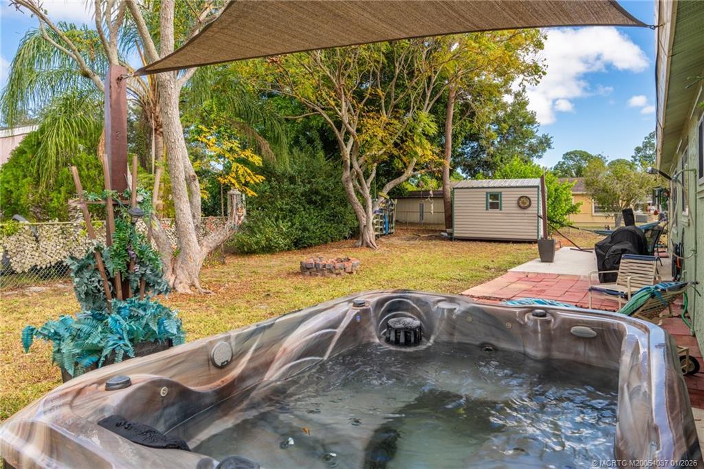 Welcome to the beautiful parks edge area! The park is within walking distance from the home as well as shopping, restaurants, and schools. This lovely home is a 3/2 with a BRAND-NEW A/C, roof 2021, newer hot water heater, freshly painted inside, an open kitchen that has a front paneled subzero refrigerator, a relaxing hot tub in the fully fenced, oversized corner lot back yard along with a shed for your storage needs. A large custom storage room with a Frigidaire side-by-side and a beautiful community pool and recreational facility for residents to enjoy and even rent for special events! The monthly HOA fee is only $18.75, dogs and cats are allowed, and some commercial vehicles are allowed too!