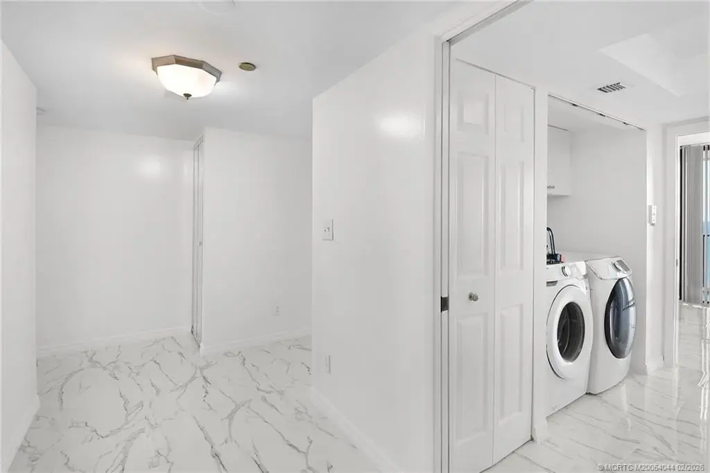 Indulge in elevated oceanfront living in this exquisite 16th-floor residence on Hutchinson Island. This 2-bedroom, 2-bath condo captures panoramic Atlantic Ocean views and stunning sunrises, while a second balcony offers tranquil sunset vistas over the private 9-hole golf course, marina, and Indian River Lagoon. Thoughtfully updated, the condo features granite counters, new kitchen cabinets, new tile flooring throughout, beautifully renovated bathrooms, and fresh interior paint. The Admiral is a premier building with resort-style amenities including a heated pool and spa, private beach access, fitness center, social room, elegant lobby, under-building garage parking, and additional storage. Island Dunes Country Club membership with golf and tennis is included. Boat slips may be available for rent or purchase. Recent building improvements include completed concrete restoration, new roof, balcony flooring, and parking deck. Milestone Inspections Completed.