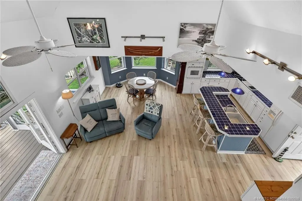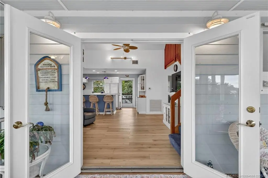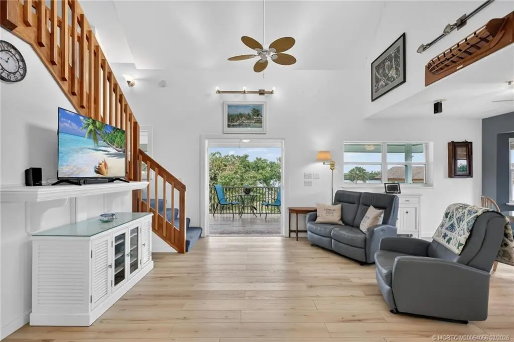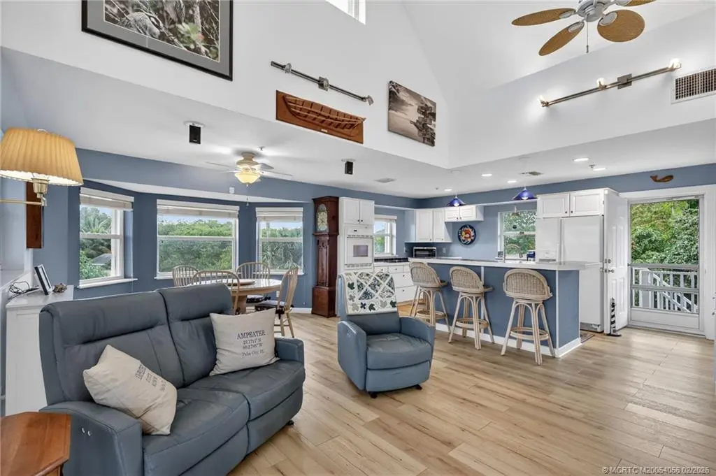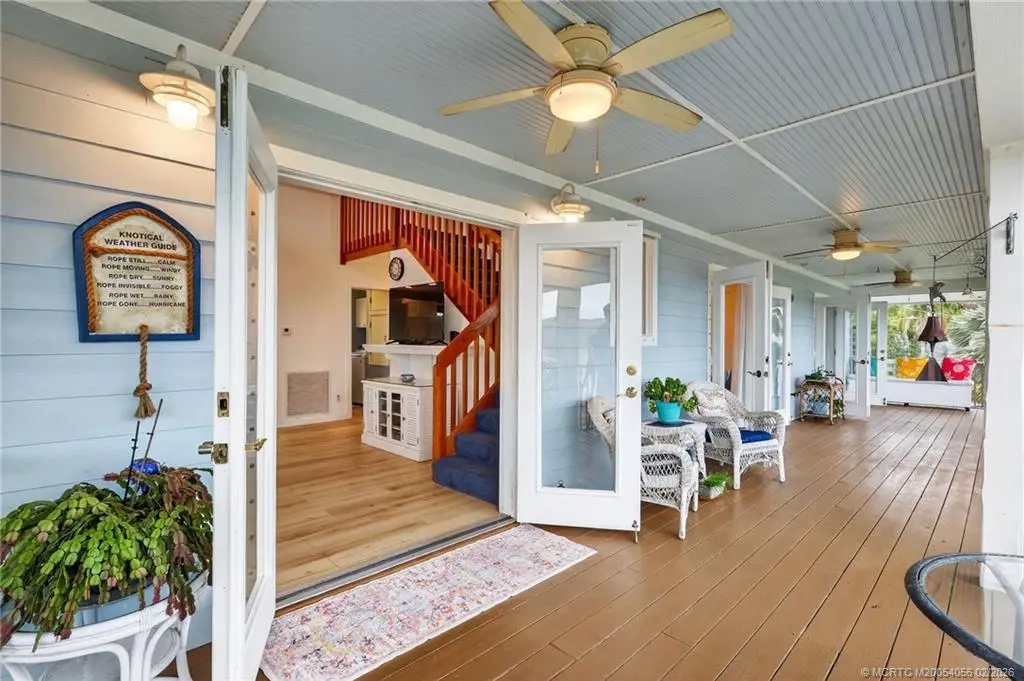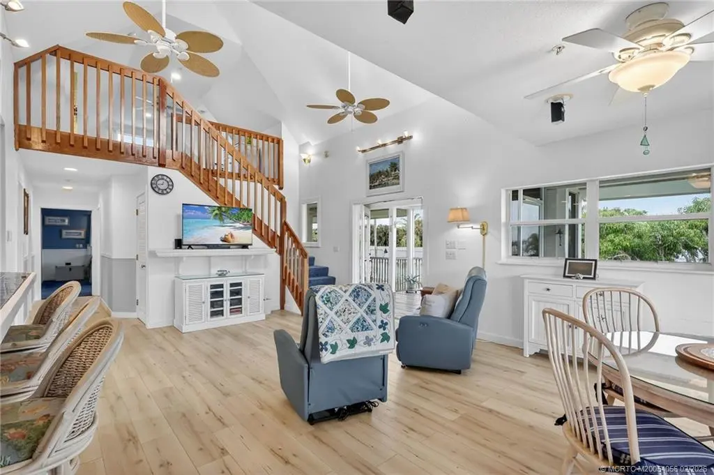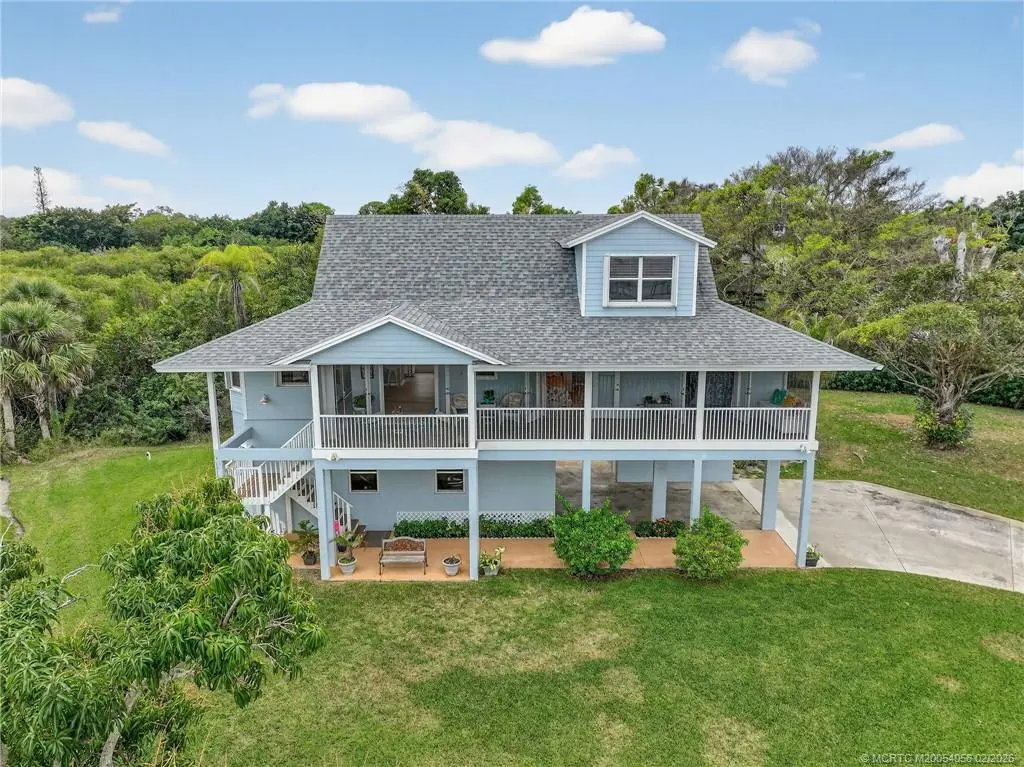 Breathtaking views of the St. Lucie River are yours in this 3-story, Key West-style stilt home in old Palm City. Built in 2002, the CBS-Hardie plank residence stands majestically on a half-acre non-waterfront lot of lush landscaping and fruit trees. Open floor plan, 2 bedrooms plus a loft (possible 3rd bedroom), 2 bathrooms, oversized 2-car garage & separate storage room. Spanning the length of the home, the 2nd floor screened porch boasts gentle breezes and spectacular views of the river, wildlife, sunrises and full moons. No HOA or deed restrictions. HIGHLIGHTS: Complete storm shutters, fire sprinkler system, central vacuum, whole house generator, dumb waiter, vaulted ceilings, large picture windows and exterior freight lift. Shingle roof (2021), HVAC (2020), exterior paint (2021), wood laminate floors (2022) & washer and dryer (2021). Minutes from Martin County's A-rated public schools, restaurants, grocery stores, hospitals, parks and boat ramps; and beaches.