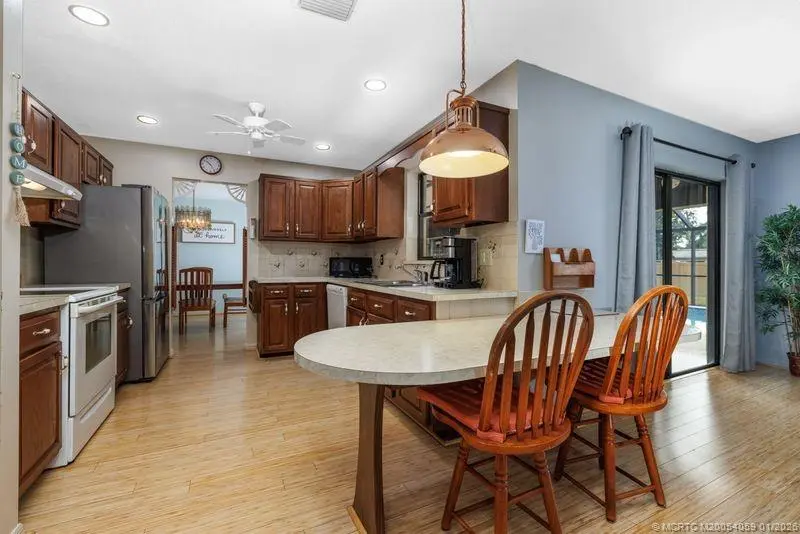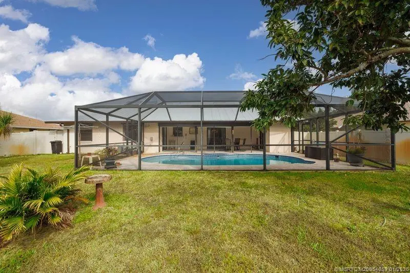 This furnished short-term rental offers a wonderful opportunity to enjoy Florida living with a screened in pool, patio, and fully fenced backyard. The 2 bedroom, 2.5 bath home features a comfortable and functional layout, including both a living room and a separate family room, providing plenty of space to relax or entertain. The screened in pool and patio serve as the centerpiece of the home, creating an inviting outdoor retreat. Ideally located, you’ll enjoy easy access to all that Port St. Lucie and St. Lucie West have to offer, including parks, restaurants, shopping, and the beautiful Treasure Coast beaches just a short drive away. Conveniently situated minutes from I-95 and the Florida Turnpike, this rental is ideal for seasonal stays or extended visits.