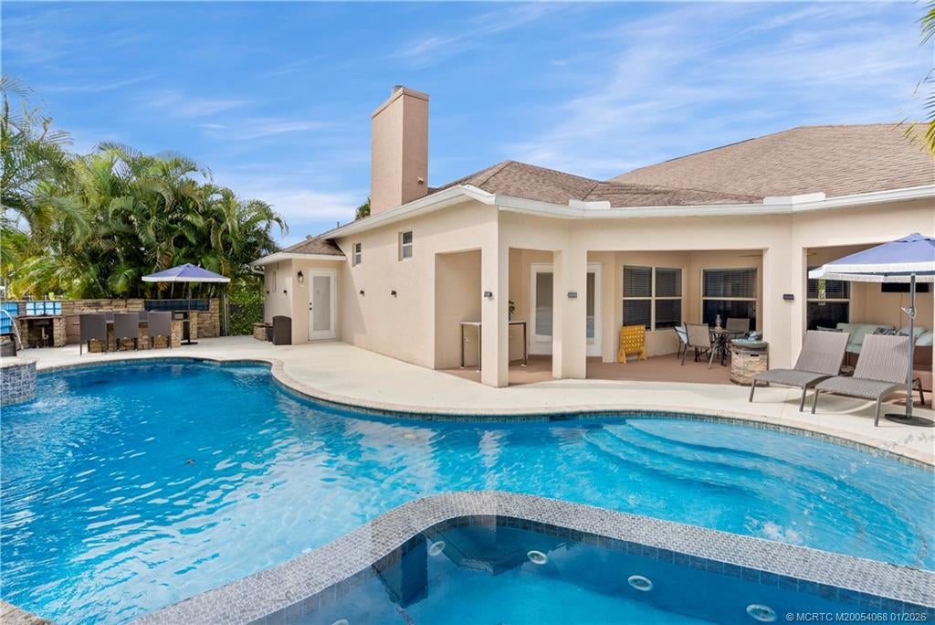 Luxury meets versatility at 4257 SW Winslow Street in Port St. Lucie. This beautifully spacious residence sits on a large, private lot and features a bright, open interior designed for both comfort and entertaining. This 4-bedroom, 3.5-bath plus den layout offers endless opportunities for multi-family living, hosting guests, or creating a home office, gym or media space. Step outside to your own backyard retreat, where a large, resort-style pool takes center stage. Don't miss the versatile outdoor living areas: a covered lanai as well as an open air, gas-plumbed summer kitchen—perfect for enjoying Florida living year-round. The expansive lot provides privacy and room to breathe, making the outdoor space just as impressive as the interior. Adding exceptional value, the seller will replace the roof prior to closing or offer a credit, allowing the buyer to select the design of their choice. A rare opportunity to own a luxurious, adaptable home with outstanding indoor and outdoor living.