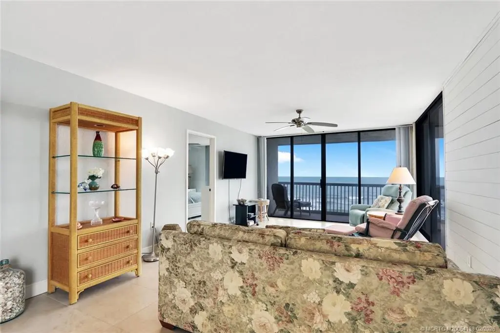 Wake up to breathtaking sunrises over the Atlantic and unwind with mesmerizing sunsets over the Indian River Lagoon from your wraparound balcony in this rarely available 7th-floor SE corner unit. Enjoy sweeping views and abundant natural light from one of the best locations in Oceana South. This updated condo features tile floors, granite countertops, white cabinetry, an elegant tile backsplash, and smooth ceilings. Offered mostly furnished, it’s truly move-in ready. Oceana South is a gated oceanfront community with resort-style amenities including two pools, hot tub, tennis, pickleball, billiards, fitness center, game room, clubhouse, and private beach access. Ideally located just minutes from the shopping, dining, and entertainment of Jensen Beach and Stuart. A rare opportunity to enjoy the best of island living. Call to see today!