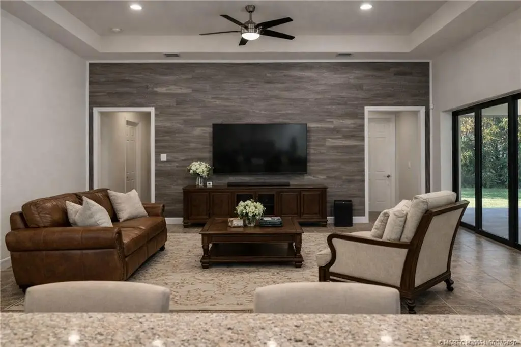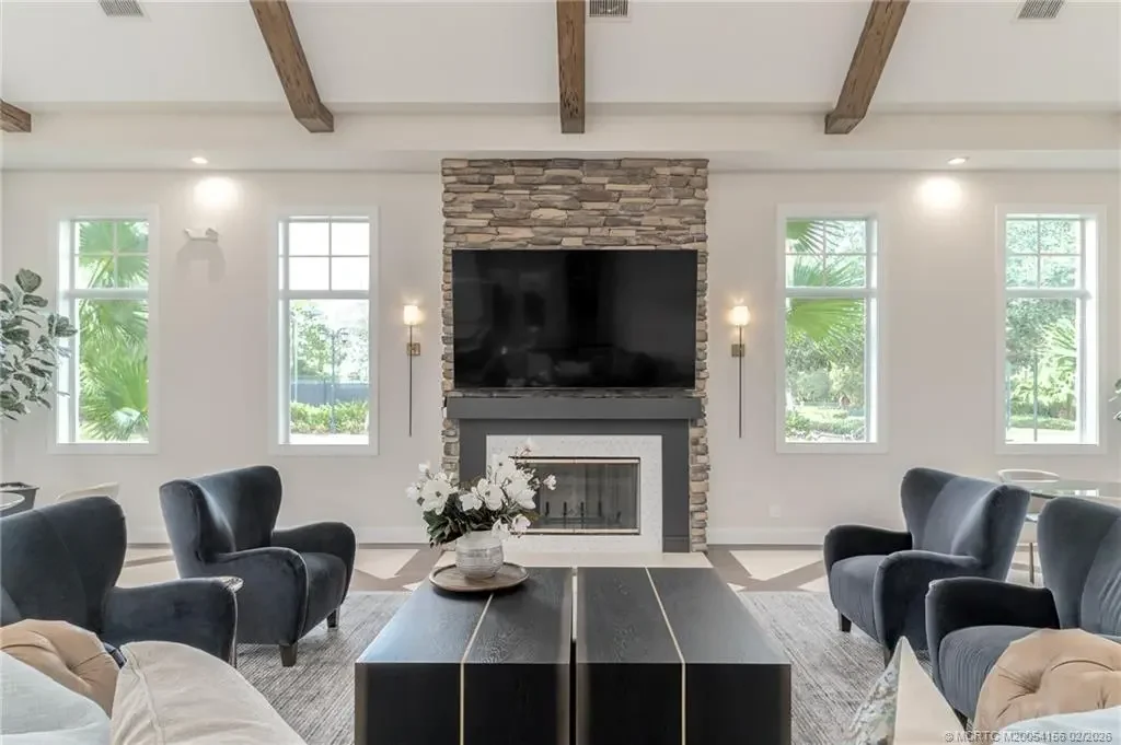 Set on a private preserve lot in Copperleaf, a premier gated community known for its exceptional family-friendly lifestyle, this beautifully appointed and well-maintained 3BR/3BA + den residence offers an elevated blend of comfort and sophistication. Built in 2016 with CBS construction, impact windows, and a tile roof, the home features coffered ceilings, designer lighting, and a striking great room with a statement wood-look accent wall. The spacious kitchen includes stainless appliances, custom cabinetry, and oversized island. French doors lead to a versatile den ideal for a home office or 4th bedroom. The coveted triple-split layout accents the home’s privacy and functionality. Outdoor living is enhanced by a screened lanai and lush privacy hedging. Priced aggressively for exceptional value, residents enjoy a newly renovated exceptional clubhouse, resort-style pool, fitness center, tennis, and pickleball, plus top Palm City schools and quick access to I-95 and the Turnpike.