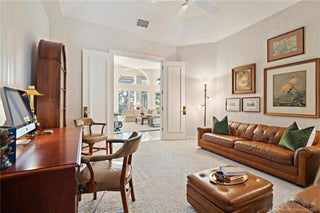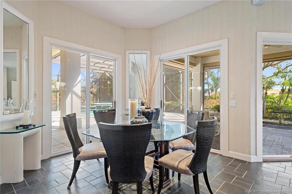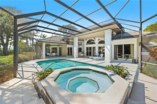 Set within guard-gated Mariner Sands Country Club, this refined retreat blends effortless flow with resort-style living overlooking the 8th green of the Gold Course. A formal entry leads to an inviting living room, formal dining, and a dedicated bar, each opening to a screened outdoor oasis with multiple lounge/dining areas, outdoor kitchen, pool & spa, and lush tropical privacy. The gourmet chef’s kitchen shines with an expansive granite island, Sub-Zero refrigerator, Thermador gas cooktop, and abundant cabinetry/pantry. The first-floor primary suite offers a sitting area and patio access, plus a spa bath with soaking tub, separate shower, dual vanities, dual walk-ins, and bidet. Two additional first-floor en-suite bedrooms, a sun-filled laundry, and a second-story loft with two more en-suite bedrooms complete the home. Oversized 2-car garage plus golf cart bay; slate/marble floors and plush carpet throughout. Discover one of Stuart's most prestigious communities.