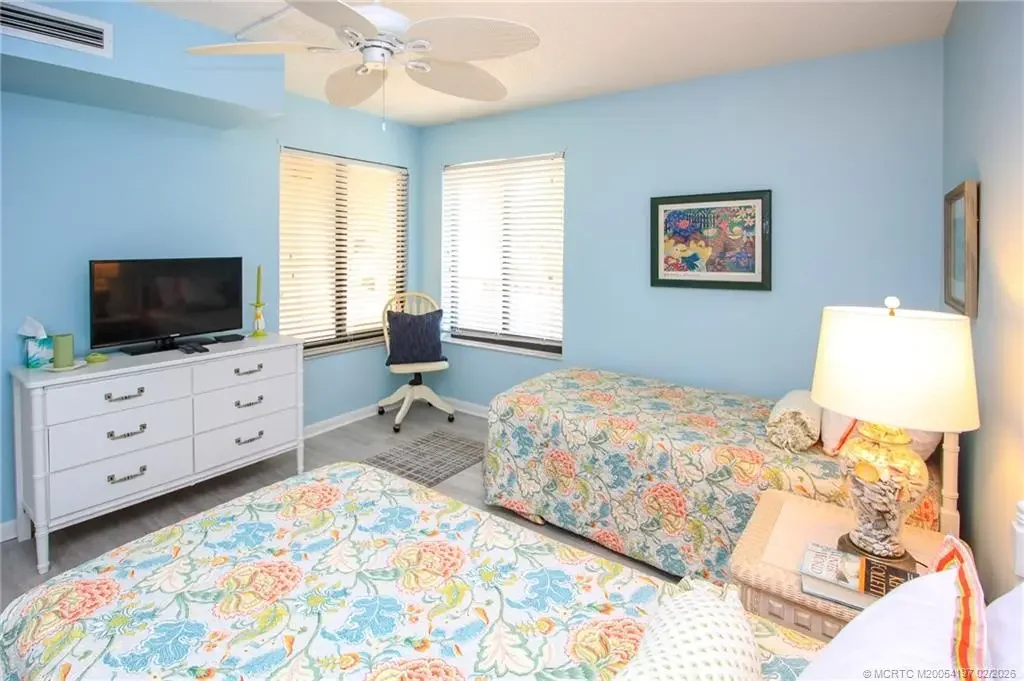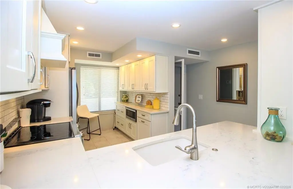 Discover this charming 2nd floor riverfront condo in the highly coveted Sandpebble community on Hutchinson Island. Upon entering the 2-bedroom/2-bath unit, you are welcomed by a sophisticated chef's kitchen featuring white shaker cabinets, quartz countertops, and stainless steel appliances. The layout offers a seamless transition from the split bedrooms to the family room, culminating in a screened balcony with views of the Indian River Lagoon. Relish expansive water vistas and the soothing sounds of the waves, rounding off your days with activities like swimming, boating, or enjoying the private beach access, five pools, tennis/pickleball courts, or neighborly social events. Boat slips can be rented at $1.50 per linear foot per month, plus an annual fee of $500, based on availability. The condos are rentable immediately for a minimum of 60 days, up to 4 times per year. Owners may keep one pet less than 20 pounds. Don't miss out on this special offering!
