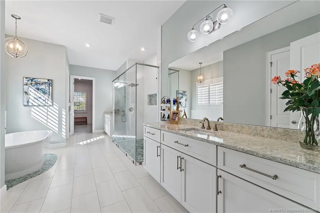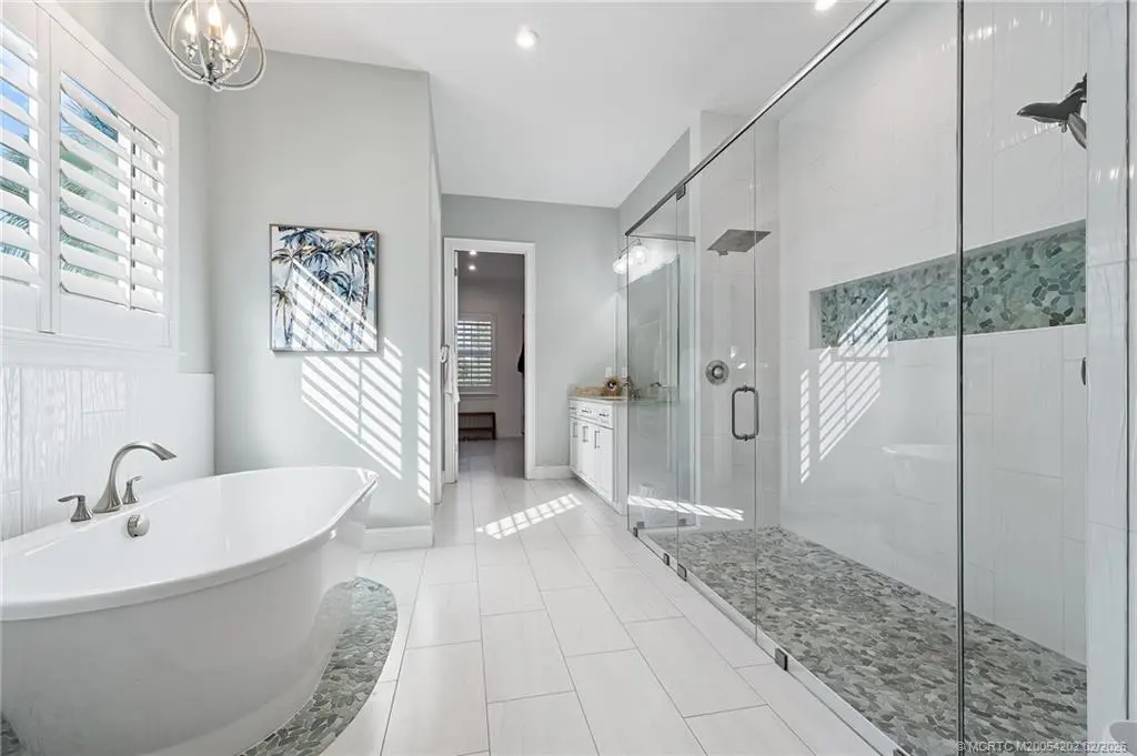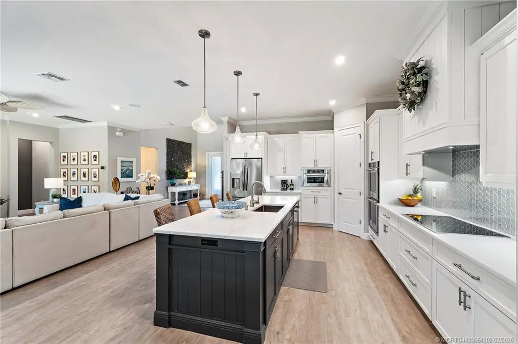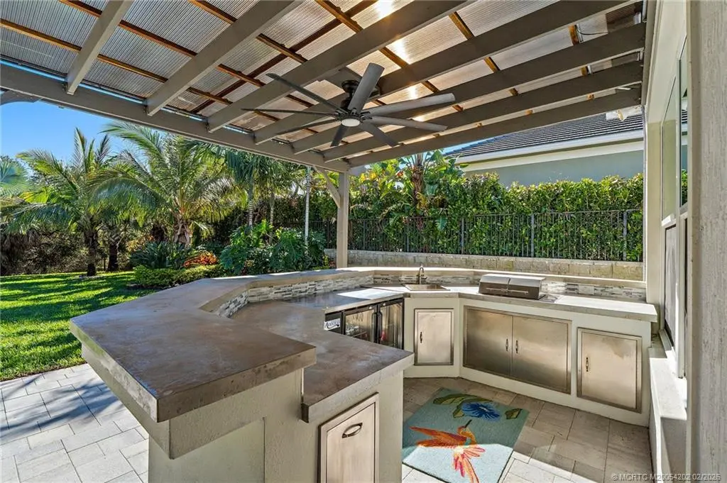 Langford Landing is a unique gated community of 57 newly constructed estate homes, each with similar architectural styling, 3-car garages and boat slips at the private marina...this is a rare find! This 4-bedroom, 4.5-bath home has designer interior features including all en suite bathrooms, custom cabinetry with "soft close" doors and drawers, crown molding, quartz counter-tops, custom closets, and plantation shutters throughout. The over-sized owner’s suite with soaking bath is located on the first floor with remaining 3 bedrooms on the second floor, along with a large open loft area. Perfect for entertaining with its' extended covered patio, built-in summer kitchen, and sandy "beach" fire pit area; all surrounded by lush landscaping and absolute privacy. Includes a private boat slip with a 20,000-pound Hurricane boat lift that can accommodate a 40' vessel. Just minutes from the St. Lucie inlet makes this the perfect location and ultimate home for boating enthusiasts.