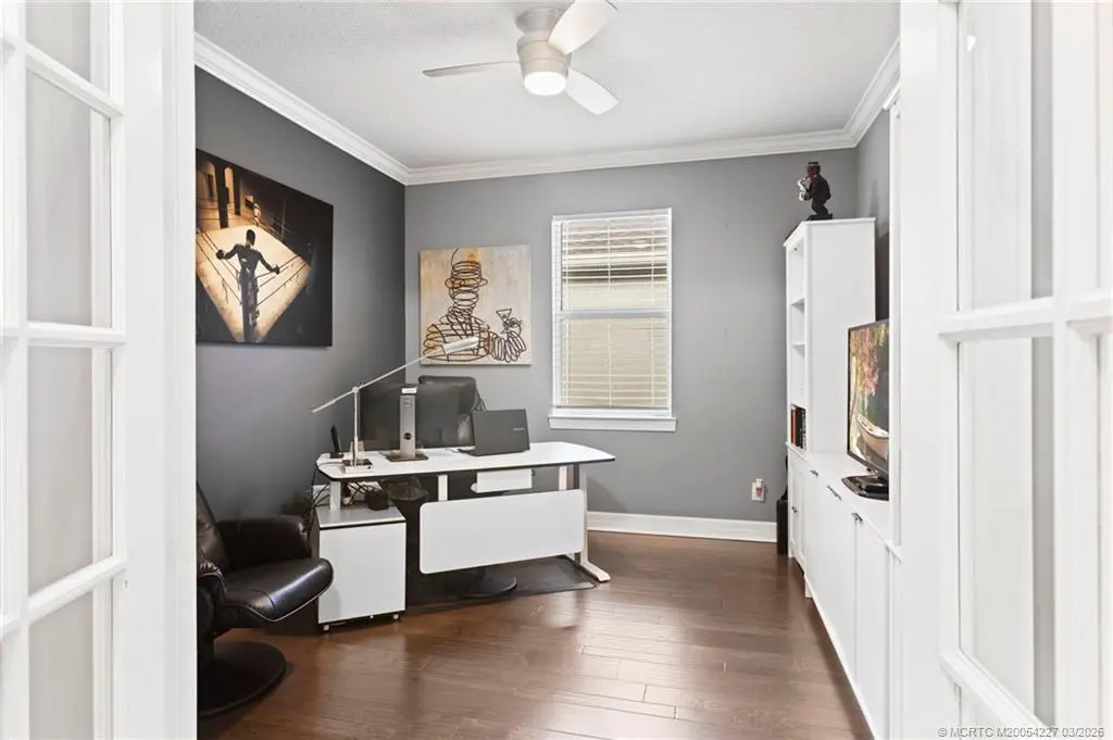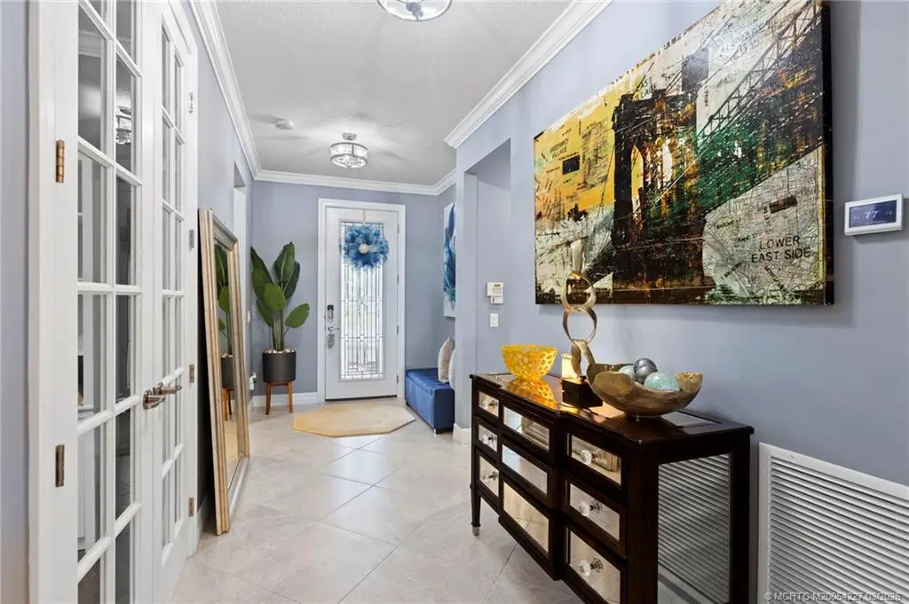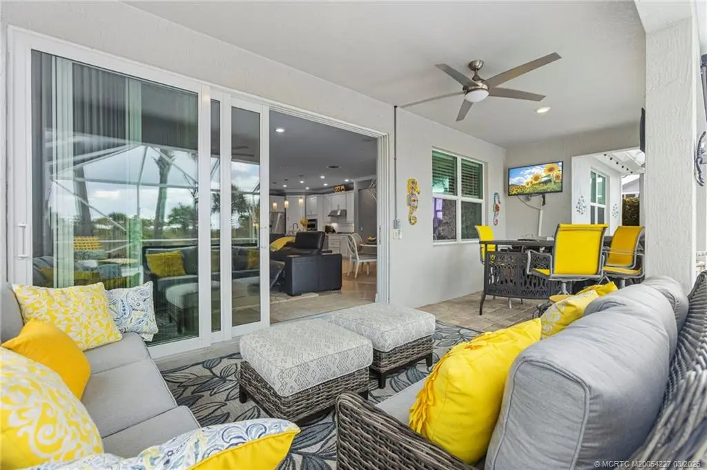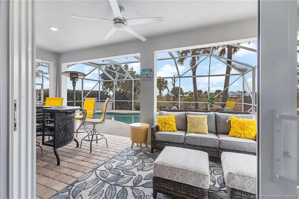 Experience the ultimate Florida lifestyle in this 3BR/2.5BA sanctuary, perfectly positioned against a permanent private preserve. This home offers total peace of mind with full impact glass and a Generac whole-home gas generator, ensuring you're always protected and powered. Step through the decorative entry to find soaring 8-foot doorways and custom-painted interiors. The living area features triple sliders with motorized Hunter Douglas sheers that open to a tropical oasis: a heated saltwater pool framed by a lush Clusia privacy hedge and professional landscaping. High-end practicalities abound, including an extended 4-foot garage with Epoxy flex-flake flooring, custom-built closets, and a built-in home safe. No rear neighbors—just serene nature and absolute seclusion. This is move-in-ready luxury where every upgrade has already been done for you.