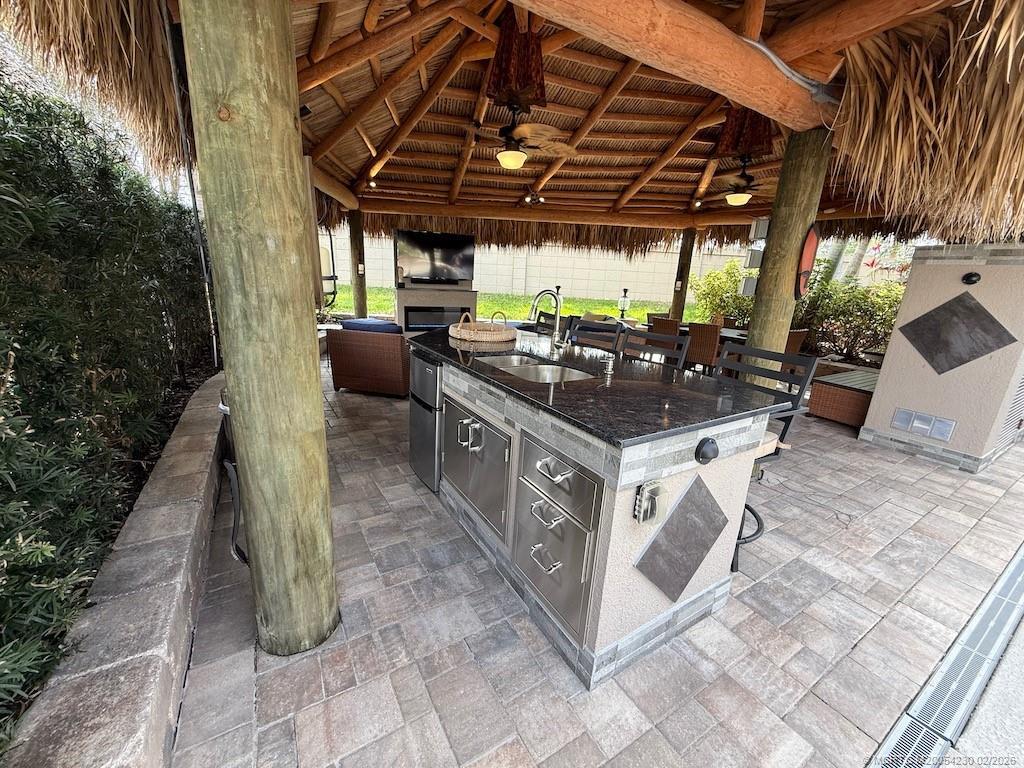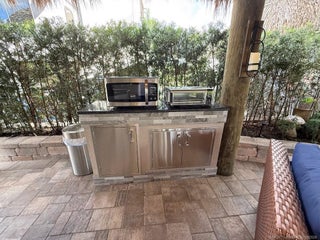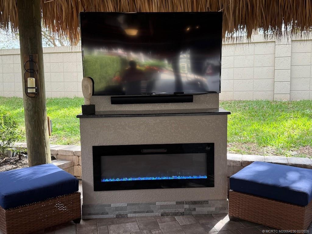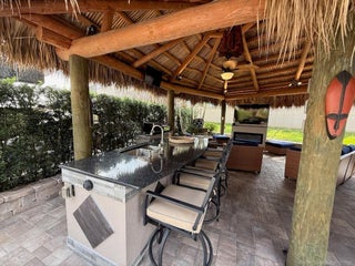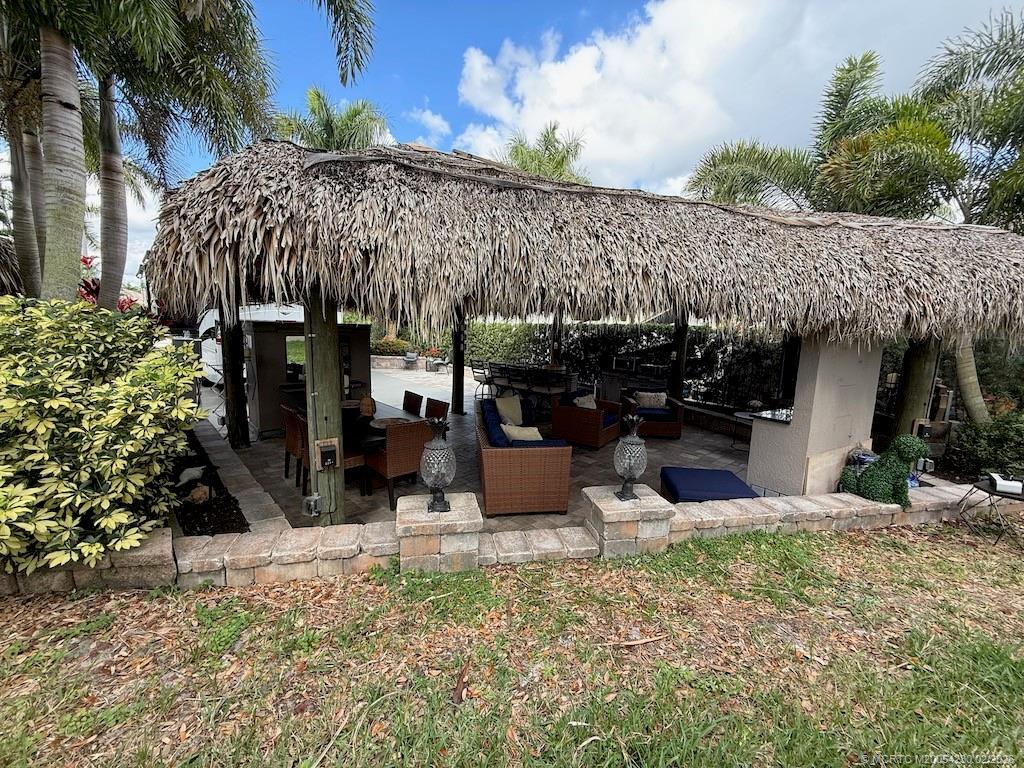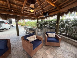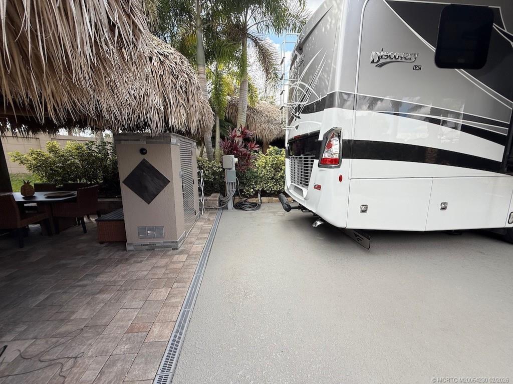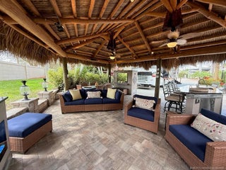 mmaculate and move in ready! This spacious 2,868 sq. ft. lot offers the perfect blend of comfort and style, making it feel just like home. The large tiki hut is beautifully designed with a decorative fan pole and provides an ideal space for relaxation and entertaining. Inside the tiki, you'll find a well-appointed galley kitchen with granite countertops and bar, a built-in electric fireplace, and a wall-mounted flat-screen TV—perfect for cozy evenings. A custom storage unit with decorative shelving adds both functionality and charm. The space is tastefully furnished with a dining table and chairs, as well as a comfortable sofa and seating area for ultimate relaxation. The extra-wide lot offers plenty of room for entertaining in a private, tropical setting. Priced to sell, this exceptional property is a definite must see!