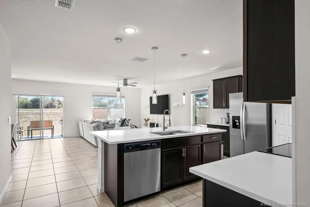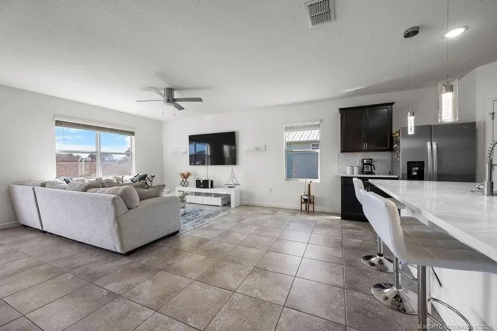 COMING SOON !!Rare canal-backed 2022 home with no HOA—this one won’t last. Schedule your showing now. Beautiful 2022 CBS-built 3-bedroom, 2-bath, 2-car garage home ideally situated on a peaceful canal-front lot in Port St. Lucie. This modern home features a bright open-concept layout and tile flooring throughout, creating a clean, cohesive, and contemporary feel. Enjoy everyday living and entertaining with a spacious kitchen and living area that flow seamlessly to the backyard, where tranquil canal views provide privacy and a serene outdoor setting—perfect for grilling, relaxing, and enjoying Florida sunsets with no rear neighbors. The seller is offering valuable pre-closing improvements, including installing tile flooring in the bedrooms, professional grout cleaning of tile floors, and paint touch-ups, ensuring the home is delivered move-in ready. Your opportunity to own a newer home with canal view, privacy, and no restrictions—ideal for enjoying the warm & sunny Florida lifestyle.