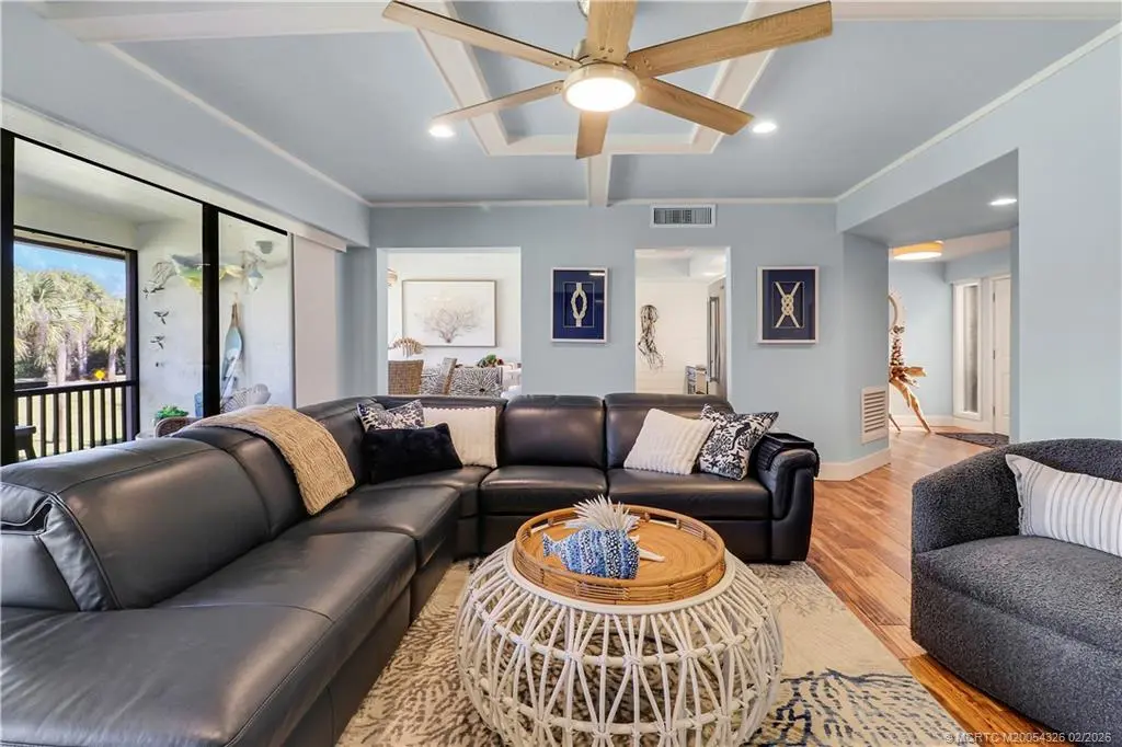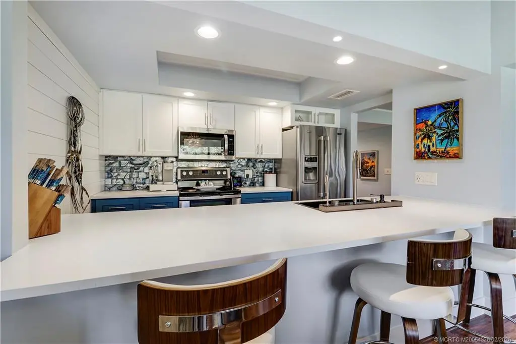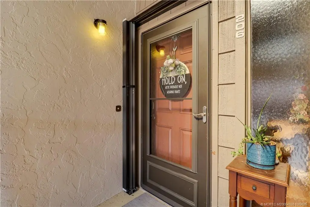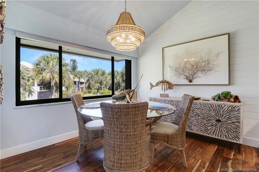 Experience refined Florida waterfront living in this GORGEOUS, fully renovated River Club residence featuring quality 2024 upgrades and an exceptional location just steps from the marina and scenic St. Lucie Riverfront. Larger than most River Club condos at approximately 1,220 sq ft, this home features vaulted ceilings, expansive windows, and rich authentic hardwood flooring throughout -a rare upgrade in this community. The screened balcony offers a serene garden setting, creating a private outdoor retreat. The updated kitchen features granite countertops, stainless steel appliances, double oven, oversized deep sink, and bar seating. The primary suite features a custom glass walk-in shower, dual sink vanities, and updated fixtures. Additional features include in-unit Maytag washer and dryer and quality interior finishes throughout. River Club offers riverfront walkway access, marina, and dockage along the scenic St. Lucie River. Boat slips may be available for purchase.