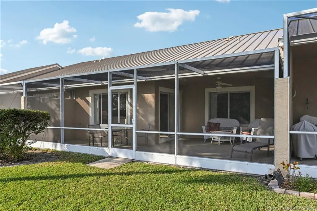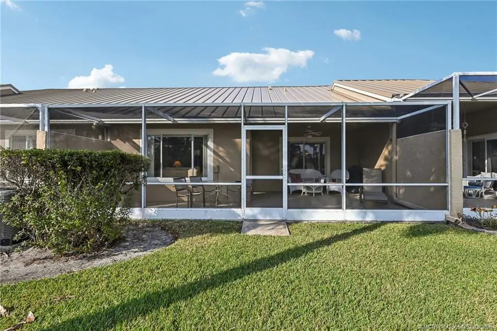 GOLF COURSE VIEWS & NEW METAL ROOF – TURNKEY OPPORTUNITY! Discover the perfect canvas for your Florida dream in the highly sought-after Jensen Beach Country Club! This home offers the ultimate peace of mind with a BRAND NEW METAL ROOF and a stunning, expansive view of the championship golf course. Offered COMPLETELY TURNKEY, this residence is ready for immediate occupancy. The interior features easy-maintenance tile in the living areas and laminate wood in the bedrooms. BONUS SPACE: The garage has been converted into a functional 3rd bedroom/bonus room (unpermitted), offering extra square footage for guests or a home office. Prefer a garage? It can easily be converted back to its original 1-car configuration! Enjoy world-class amenities including a manned guard gate, 3 heated pools, tennis, and pay-as-you-play golf—all just minutes from the beaches. At this price point, with a new roof and low HOA fees $369.00 per month, turnkey furnishings, this home is an absolute must-see!