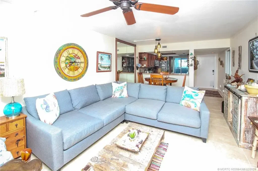 Experience coastal living in this fully renovated waterfront condominium on Hutchinson Island. This split-plan 2BR/2BA features rich wood cabinetry, granite countertops, stainless steel appliances, and tile flooring throughout. Enjoy wide Intracoastal views and breathtaking sunsets from your screened balcony. A boater’s paradise with 5 heated pools, tennis and pickleball courts, private beach access, and kayak storage. Impact glass windows, new front door, accordion shutters on the balcony and a 2025 A/C for peace of mind. Boat slips may be rented at $1.50/linear foot per month plus $500 annually based on availability. Ideally located just minutes from downtown Stuart’s dining, shopping, and charm—perfect for year-round living or a relaxing retreat.