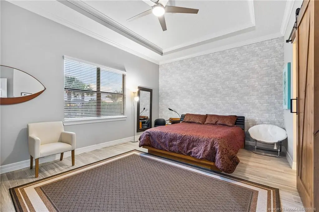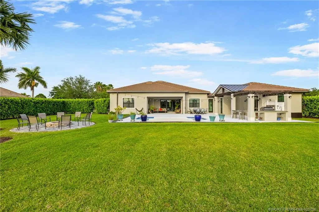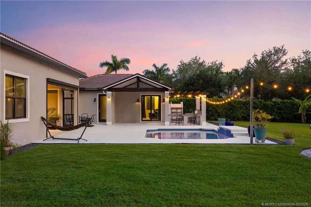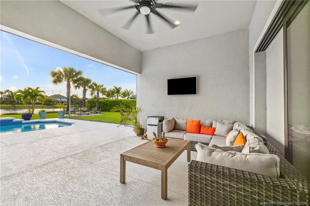A rare offering in the sought after community of Copperleaf, this four bedroom, four bath residence with private office sits on over half an acre & has been thoughtfully elevated throughout, including a 2022 in law suite addition designed for privacy & flexibility. Full impact glass & doors, a buried 500 gallon propane tank pre plumbed for a future whole house generator, & a 2020 heated saltwater pool overlooking serene lake views The chef’s kitchen is beautifully appointed with 2021 KitchenAid appliances, a 42 inch built in refrigerator, gas cooktop, ice maker, refined backsplash, & curated designer fixtures. Zero corner sliders open seamlessly to a covered lanai with remote screens, creating effortless indoor outdoor living. The private in law suite offers a cabana bath, secluded lanai, pergola with swings, built in bar, & a premium Napoleon grill. An epoxied three car garage, firepit patio, outdoor shower, & custom tilework complete this turnkey, move in ready residence