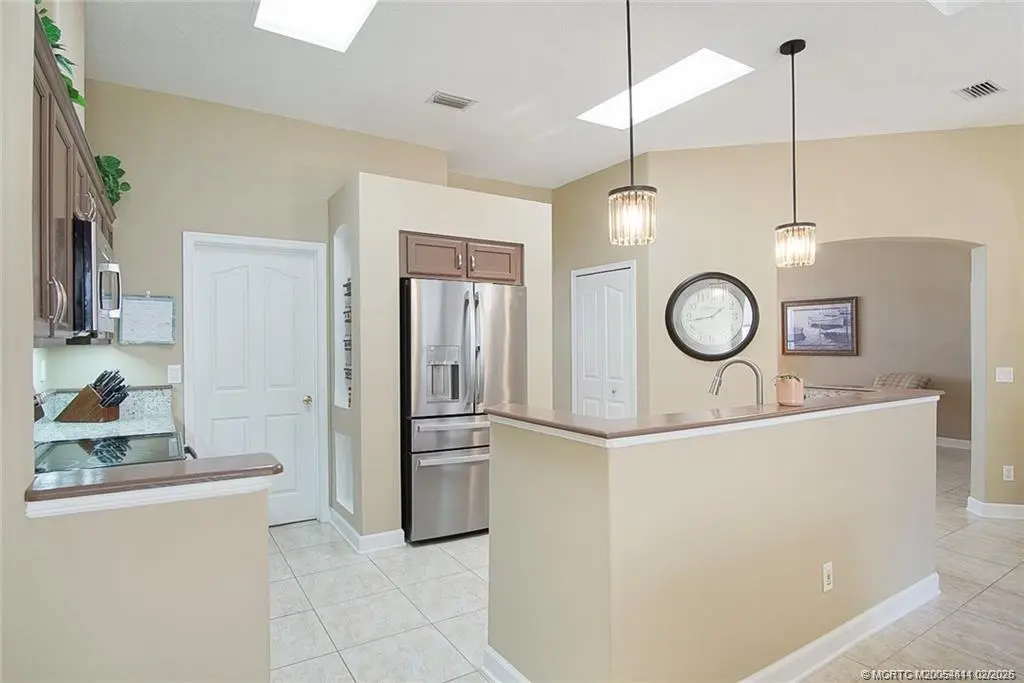 Location, Location! 2025 New roof. Port Saint Lucie home in a friendly neighborhood. This 3 bedroom 2 bath home on a large corner lot offers room for all your toys and has over 2100 square feet of living area. Step inside, tile through out, stainless steel appliances, granite countertops, fireplace, 10 foot ceilings. The back yard is a tropical oasis. Home is 7 miles to area beaches, boat launch and downtown Jensen Beach. Bring your boat