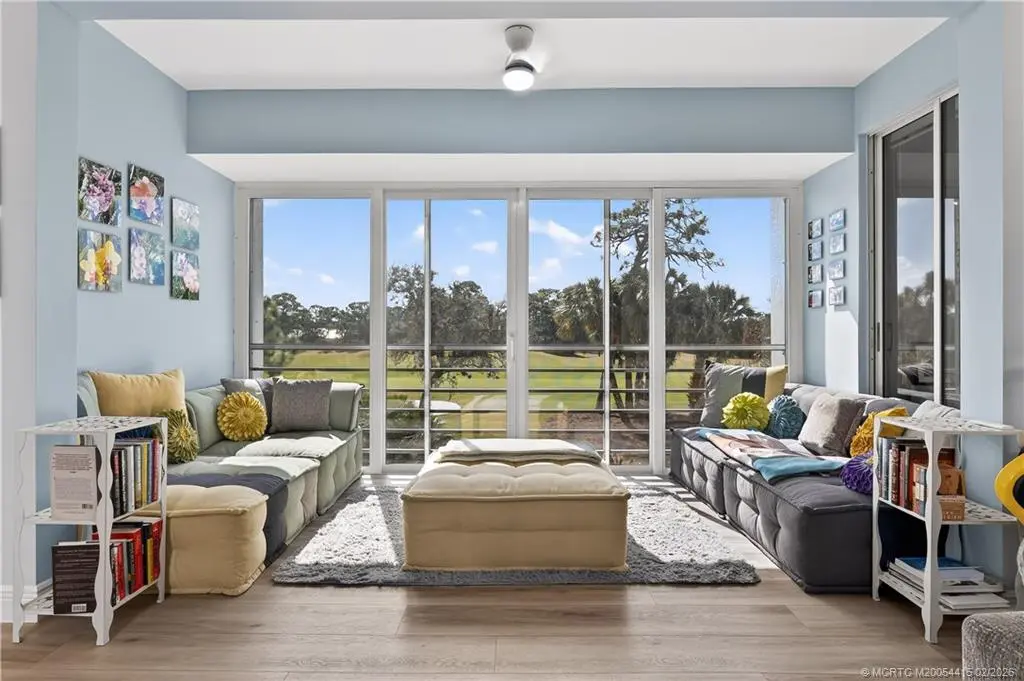 Updated, Furnished, 2-Bedroom/2-Bathroom second-floor condominium, with panoramic golf course views of the River Ridge golf course, plus detached designated car port and golf cart garage, Features: Impact Windows, Kitchen offers Bosch appliances, quartz countertops & updated cabinetry. Luxury vinyl wood plank flooring in living areas. Enclosed porch creates bright Florida Room. Move-in ready! Harbour Ridge is a private, mandatory membership community featuring 2 beautiful 18-hole championship golf courses, 9 Har-Tru tennis courts, pickle-ball courts, impressive fitness facility w/ pool, sprawling waterfront clubhouse w/ 3 dining rooms, 2-mile riverfront walking path, biking, yacht club, and marina with boat slips available for additional fee. $125,000 Equity ($1,000 Refundable) due at closing. Monthly HOA Fee includes Club Dues, Trail Fees, POA, Village HOA, Capital Funds Fees & appropriate taxes.