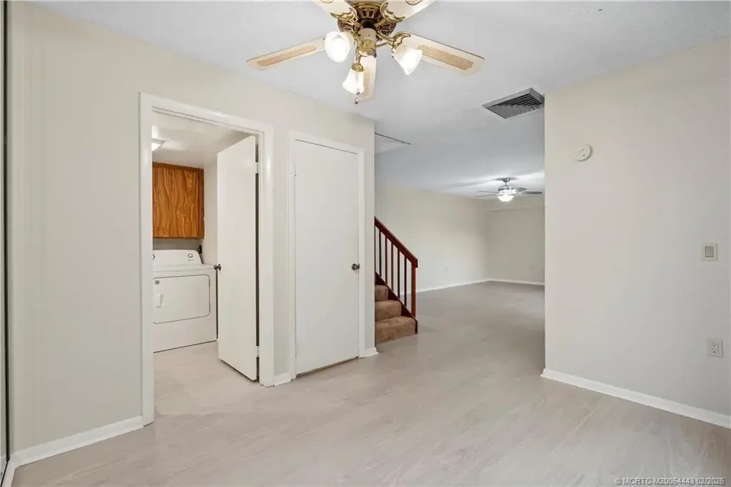 A rare opportunity in Sunset Trace—this townhome gives you the upgrades that matter without the price tag of a fully renovated flip. Brand-new flooring upstairs and down creates a fresh, cohesive look the moment you walk in, instantly elevating the space. The kitchen and cabinetry remain original, offering solid functionality today with the flexibility to update at your own pace and design to your taste. Major systems have already been addressed, giving peace of mind where it counts. The AC is recently replaced, the water heater is newer, and updated lighting adds a clean, modern touch throughout. Instead of paying for someone else’s design choices, you get the benefit of completed flooring and mechanical updates while still having the opportunity to add value over time. Well-priced, thoughtfully improved, and positioned in a highly desirable Palm City community, this is a smart move for buyers who understand long-term value and want a home they can make their own.