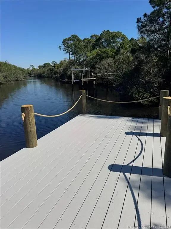 Rare find! This three-bedroom, two full bath, cul-de-sac home with conservation across from you is a paradise for the boating and fishing enthusiasts. The new dock features a 10,000 lb. boat lift with views up and down the river that never get old. A public boat ramp is 10 minutes from the community making it easy launch your boat to put on the lift or remove it for service when needed. The home is equipped with Profile GE appliances, elegant quartz countertops, and porcelain flooring. Enjoy all the upgrades, including a screened patio and natural gas piped for an outside grill. This home truly combines luxury and convenience in an ideal location. Store your lawn and garden equipment in the attached built-in 6'x8' storage area. Rivella is a gated community and centrally located and close to the beaches of Martin and St Lucie County.