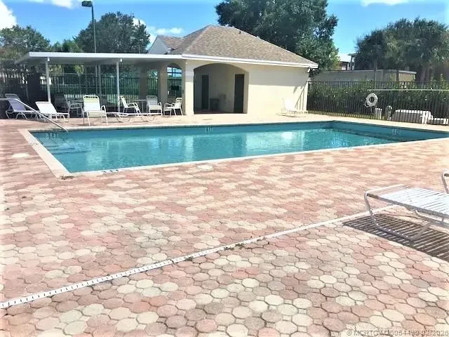 Immaculate and well maintained home in the heart of Palm City. Owner has cared for property and it shows. New A/C June, 2024, new metal roof October, 2025. Home features spacious family room overlooking tiled screened porch with partial views of lake, bright & airy with vaulted ceiling, laminate and tile flooring throughout, accordion hurricane shutters, stainless steel appliances and granite countertops. Master bedroom has his/her closets with walk-in shower. Home sits on a corner lot. Community offers, pool, tennis, basketball and security gate. Monthly fees include basic cable, irrigation and landscaping.