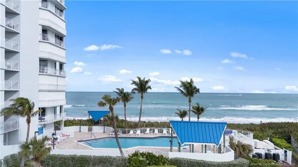Wake up to stunning ocean views from this 2 bedroom, 2 bath condo in the Empress on Hutchinson Island. The thoughtfully designed split floor plan provides privacy, making it ideal for full-time living or hosting guests. Light-filled living areas capture the beauty of the Atlantic, creating a relaxed coastal atmosphere throughout. Garage #16 is available separately for purchase, offering added convenience and storage. The Empress delivers true resort-style living with gated access, extra storage, a heated pool, jacuzzi, pickleball, tennis, fitness center, and game room. Recent milestone inspections have been completed and all required work is finished, providing valuable peace of mind. With a 2-month minimum rental policy (twice per year) and allowance for one pet under 20 pounds, this condo is a fantastic opportunity for year-round enjoyment or the perfect island getaway.