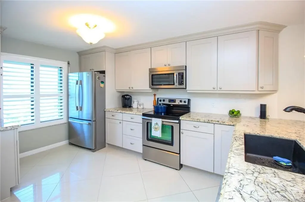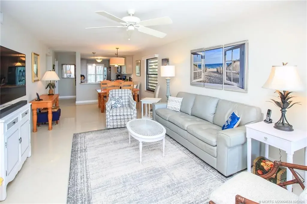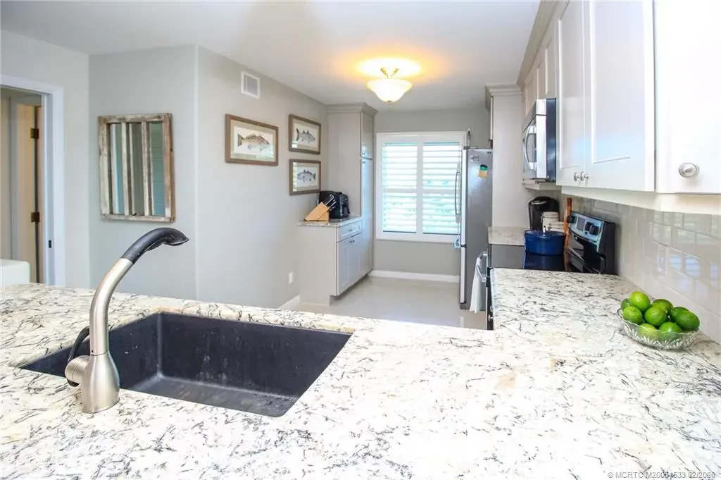 Experience coastal living at its finest in this rare 3rd-floor end-unit condominium on beautiful Hutchinson Island, perfectly positioned along the Indian River Lagoon with breathtaking, unobstructed water views. Completely renovated top to bottom, this 2-bedroom, 2-bath residence showcases a soft designer paint palette, elegant 24" porcelain tile flooring, and a bright, modern aesthetic that feels both sophisticated and serene. The stylish kitchen features stainless steel appliances, granite countertops, and light grey wood cabinetry, blending function and luxury for everyday living or entertaining. Resort-style amenities include five heated pools, boat slips for rent, kayak storage, private beach access, and tennis and pickleball courts—all within a friendly, social atmosphere that makes every day feel like a vacation. Whether you're seeking a full-time residence, seasonal escape, or investment opportunity, this exceptional end unit is a rare find that truly has it all.