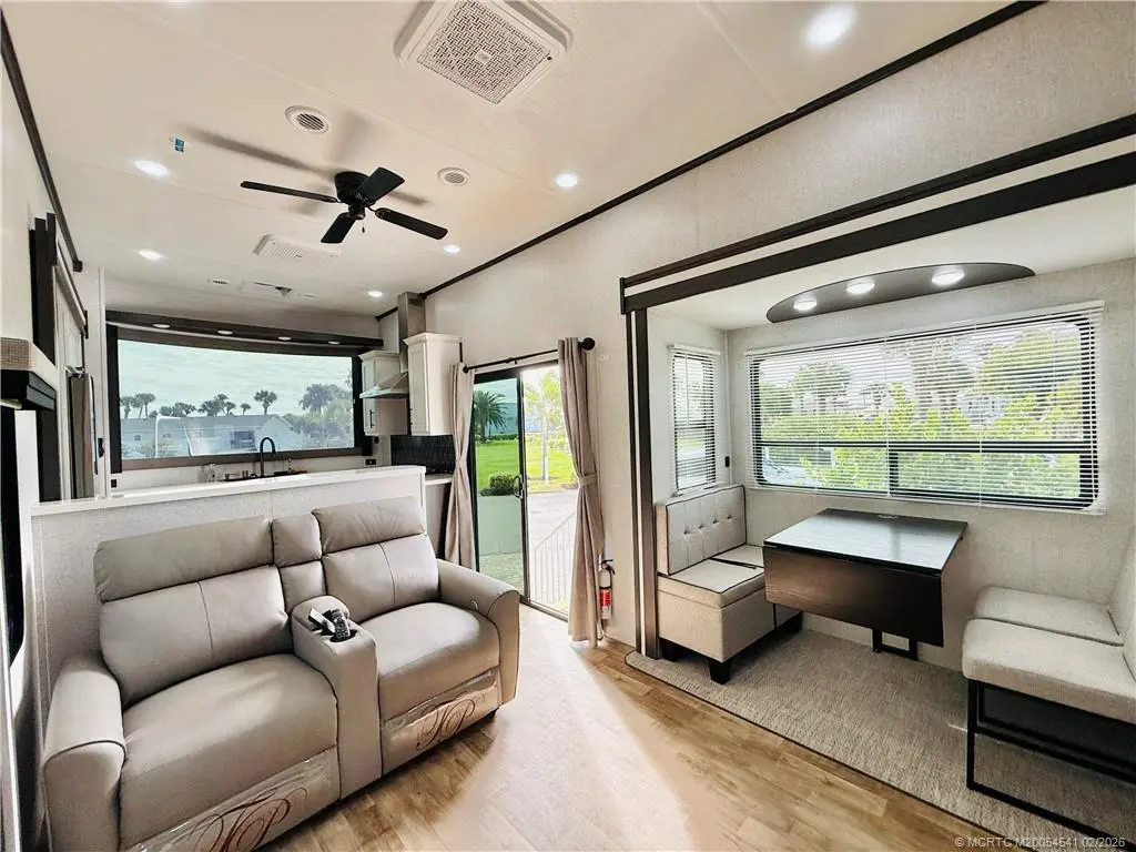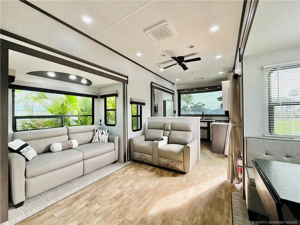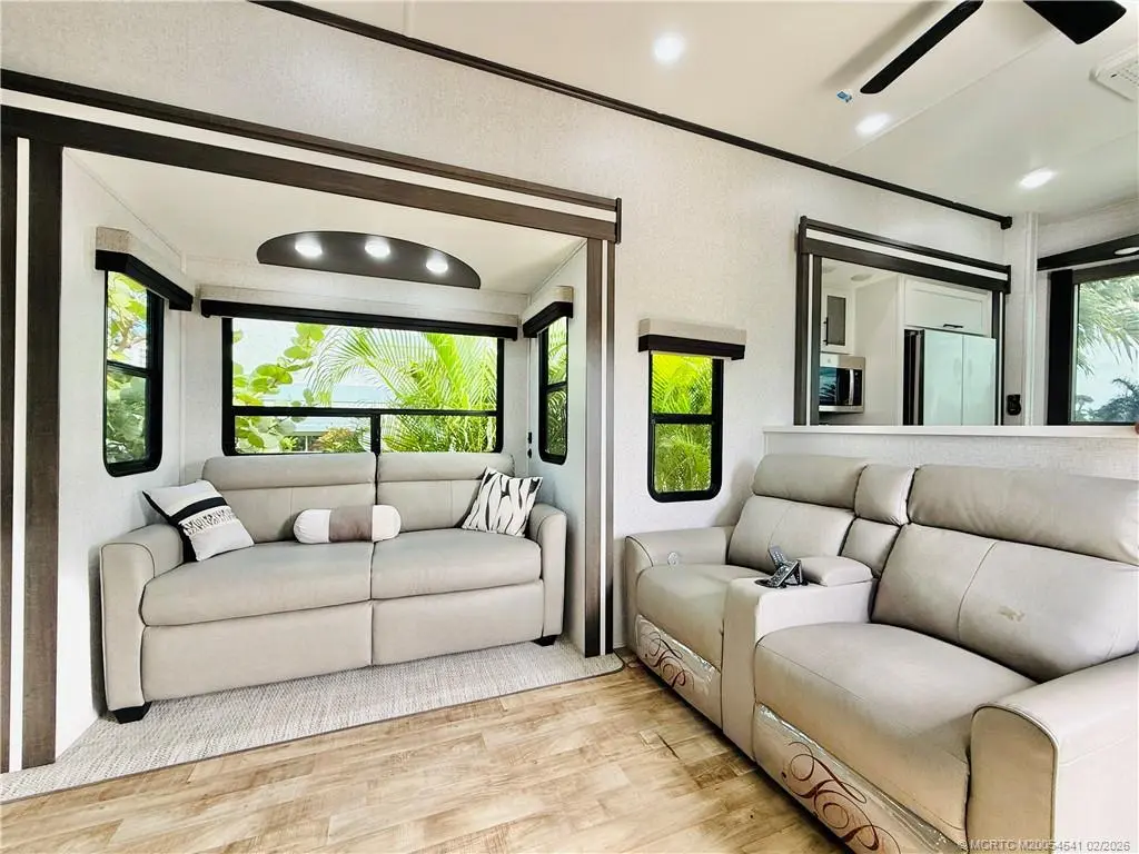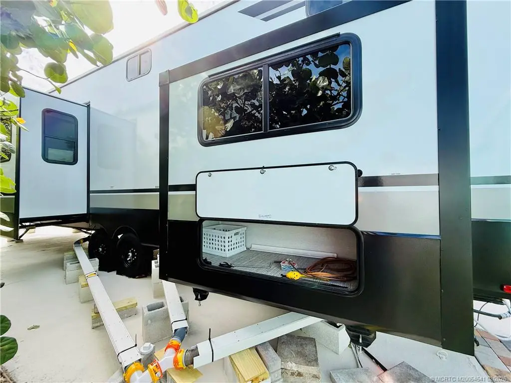 Come live the RV life within steps to the ocean! This perfectly situated RV is located in the sought after Holiday Out community with direct beach access. RV kitchen boasts full fridge with ice maker, gas stove, microwave, and dishwasher. Dining area, spacious living room with heating fireplace, and master bedroom with separate exit door, full size washer/dryer, and tons of storage. Two bedrooms up the stairway, and sleeps 4. Ideal for beach lovers, nature enthusiasts, and anyone just seeking relaxation. Full hook ups: electric, water, and sewer. Walk to the beach through a pedestrian tunnel and enjoy oceanside resort amenities like the heated pool, tennis, pickleball, bocce, picnic area with BBQ grills, and private beach access with parking. Community close to restaurants, downtown, and shopping. Also available annually.