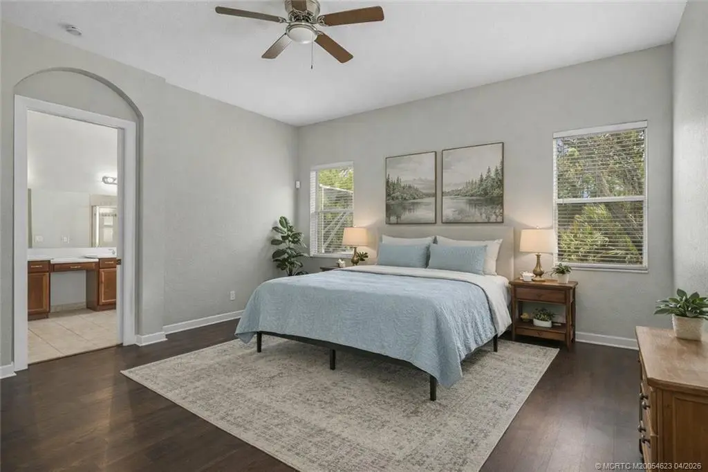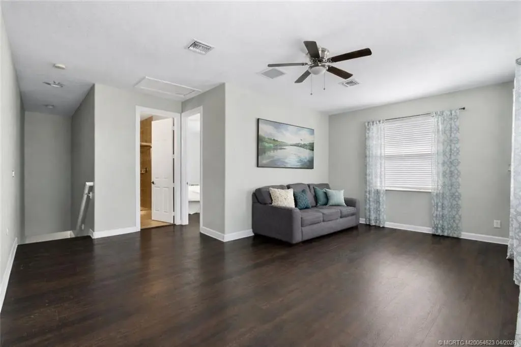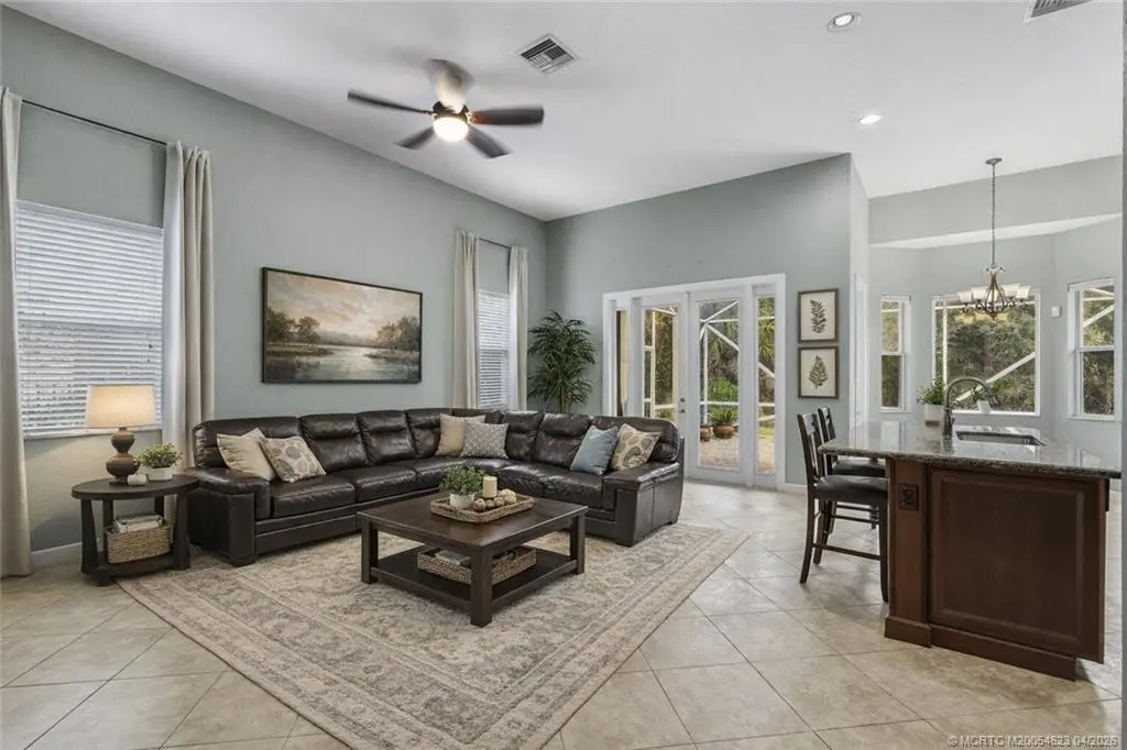 Discover Highlands Reserve in Palm City, a gated community offering upscale living and resort-style amenities. Built in 2006, this 3,136 sq. ft. concrete block home features a flexible floor plan with 5 bedrooms, 3.5 bathrooms, and a bonus room that can easily convert to 6 bedrooms! The main level features the primary suite, 3 additional bedrooms, and 2.5 baths. Upstairs offers a private bedroom, full bath, and a spacious 20x19 loft, perfect for guests or multi-generational living. Luxury vinyl flooring enhances the stairs and all bedrooms. Enjoy the covered and screened-in paver patio, perfect for relaxing or entertaining. Residents also have access to a 4,600 sq. ft. clubhouse with fitness center, heated pool, tennis, pickleball, playground, BBQ pavilion, nature trails, and 200+ acres of preserves & lakes. The HOA covers cable, internet, lawn care, irrigation, and full amenities! All ages and pets welcome, conveniently located near A-rated schools, I-95, Turnpike, shopping & dining.