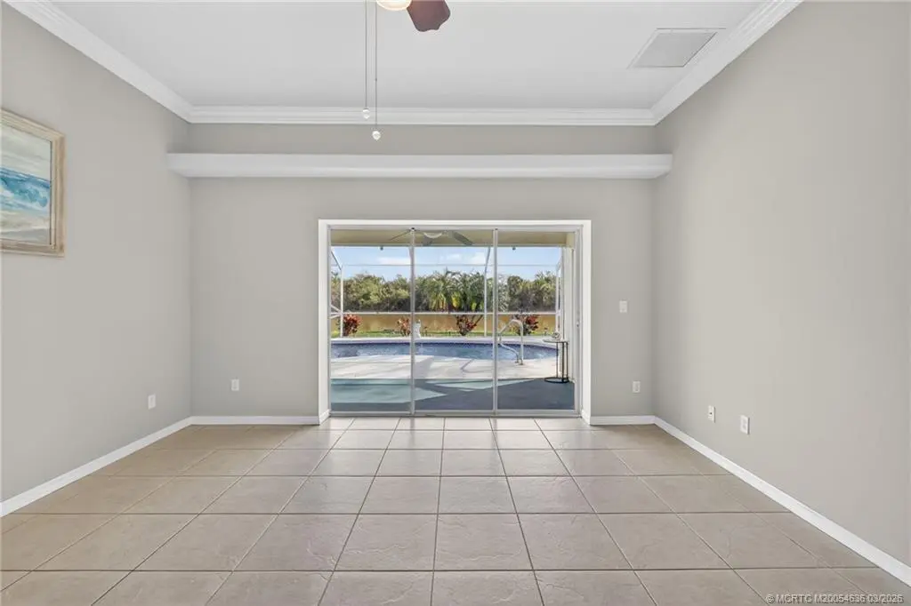 Immaculate pool home in highly desirable Sawgrass Lakes! This beautiful home has ceramic tile throughout, carpet in bedrooms, crown molding, a split floorplan and a sparkling pool with screen enclosure overlooking the lake with a preserve on the other side!! The preserve provides privacy while enjoying your pool since there are no neighbors across the lake! The roof was replaced in 2022 and the water heater and microwave were recently replaced. Sawgrass Lakes is a beautiful gated community and residents have access to secure RV and Boat storage for a small fee! HOA fee includes cable and lawn care! Don't miss this amazing opportunity to be in a pool home in time for summer!!