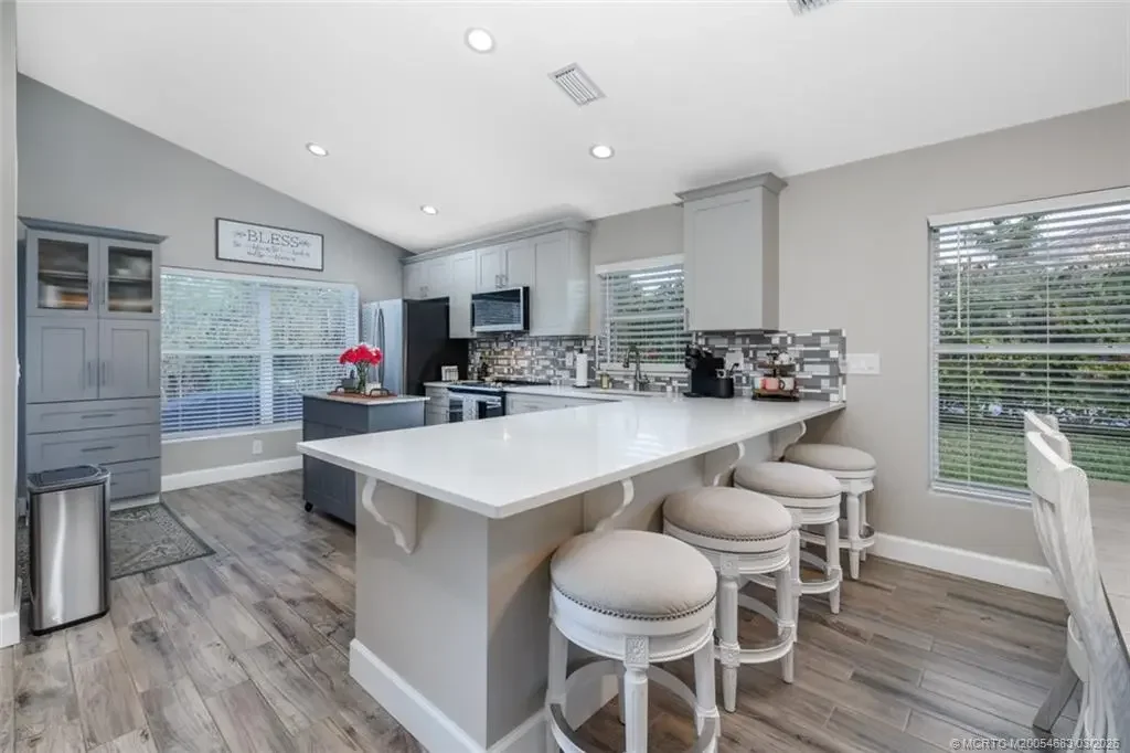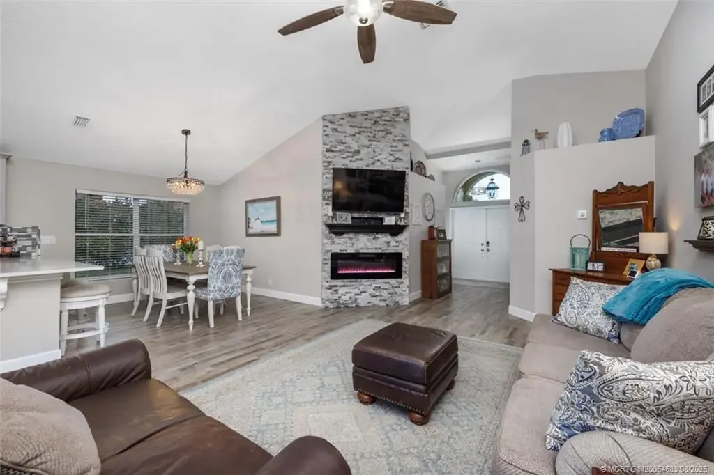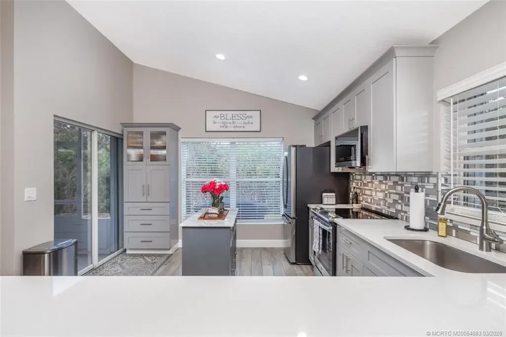 Welcome to this beautiful 3-bed, 2-bath, 2-car-garage home in Ballantrae Country Club. Bright and open with high ceilings and gorgeous wood look tile floors- no carpet!!! The home offers clean, modern living from the moment you step inside. The kitchen features stainless steel appliances, quartz countertops, and plenty of workspace for cooking and entertaining. Kitchen, dining and living rooms flow seamlessly for modern living and entertaining. A new metal roof designed to look like classic barrel tile adds long-lasting style and peace of mind. Enjoy private preserve views from the main living areas and primary suite, with a quiet cul-de-sac setting that enhances the home’s privacy. Move-in ready and impeccably maintained, this property blends comfort, quality, and a premium location with a country club setting. Close to beaches, all the shopping that Port St Lucie has to offer, plus minutes away from all the fun in downtown Stuart. Manned, gated community offers added security.