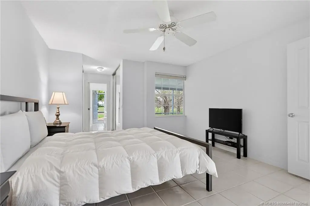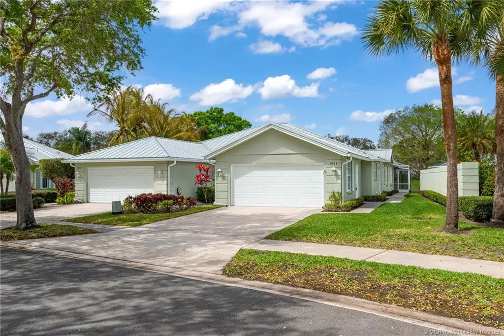 Enjoy beautiful lake views from this immaculate, extended Capri. Open, light and bright with volume ceilings, tile flooring and two spacious master suites. Large screened lanai—perfect for relaxing and watching birds and ducks playing in the lake. Quiet cul-de-sac location with a 2-car garage. Metal roof-2018. NO poly-pipes. Oak-lined streets are ideal for walking, biking or strolling with dogs. Located in a 24-hour manned, gated community offering an active lifestyle with pool, tennis, pickleball and bocce. Great proximity to I-95 and the Florida Turnpike, with easy access to shopping, restaurants, beaches and charming downtown Stuart.