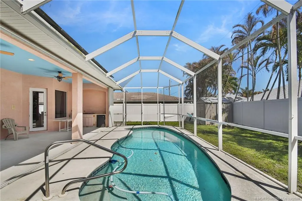 Beautiful 2002 CBS pool home located in the desirable waterfront community of Rocky Point. This spacious residence offers 3 bedrooms plus a den, 3 bathrooms, and over 2,500 sqft. of open-concept living space. Recent upgrades include a 2016 metal roof, 2019 A/C, and newly installed solar panels providing extremely low cost electric bills. Property includes a separately deeded boat slip (#15) along with access to the community marina, common dock, boat ramp, and picnic area. Just minutes to the waterways of the Manatee Pocket and the Atlantic Ocean. Close to Twin Rivers Park, Maggie’s Hammock Park, and a short drive to Port Salerno’s historic waterfront district, known for its waterfront dining, live entertainment, and vibrant coastal lifestyle.