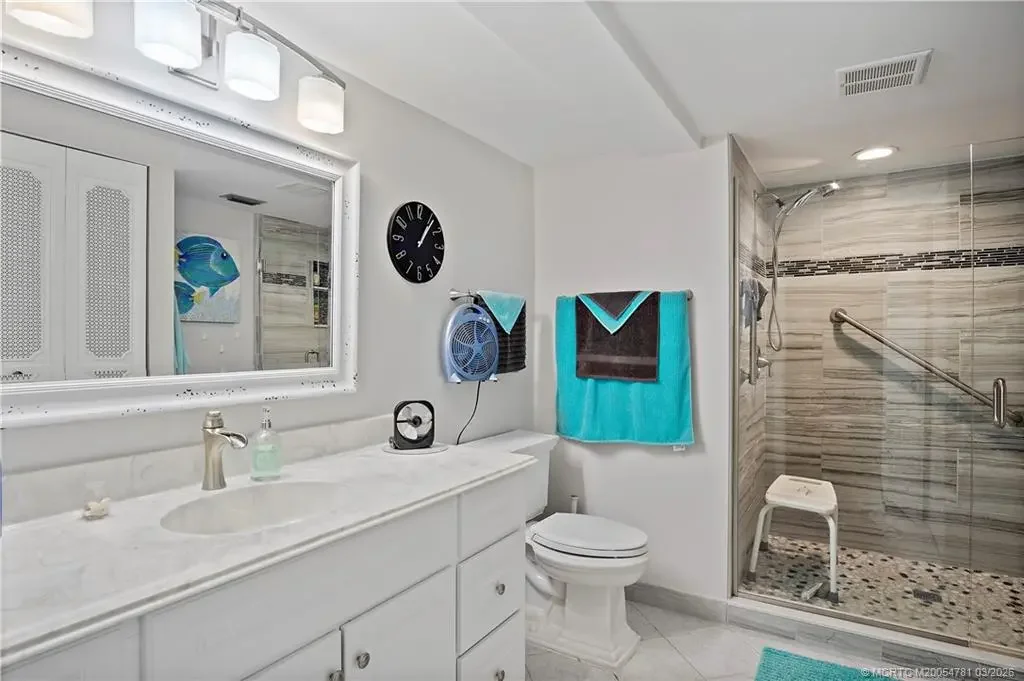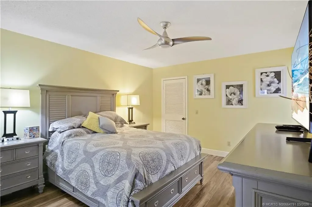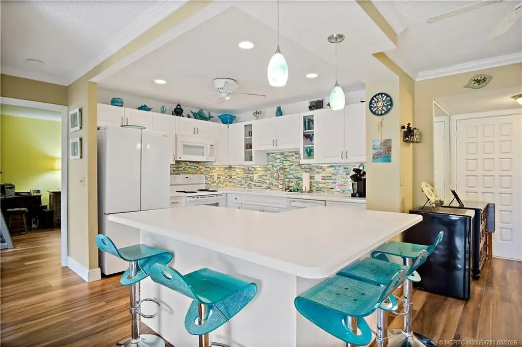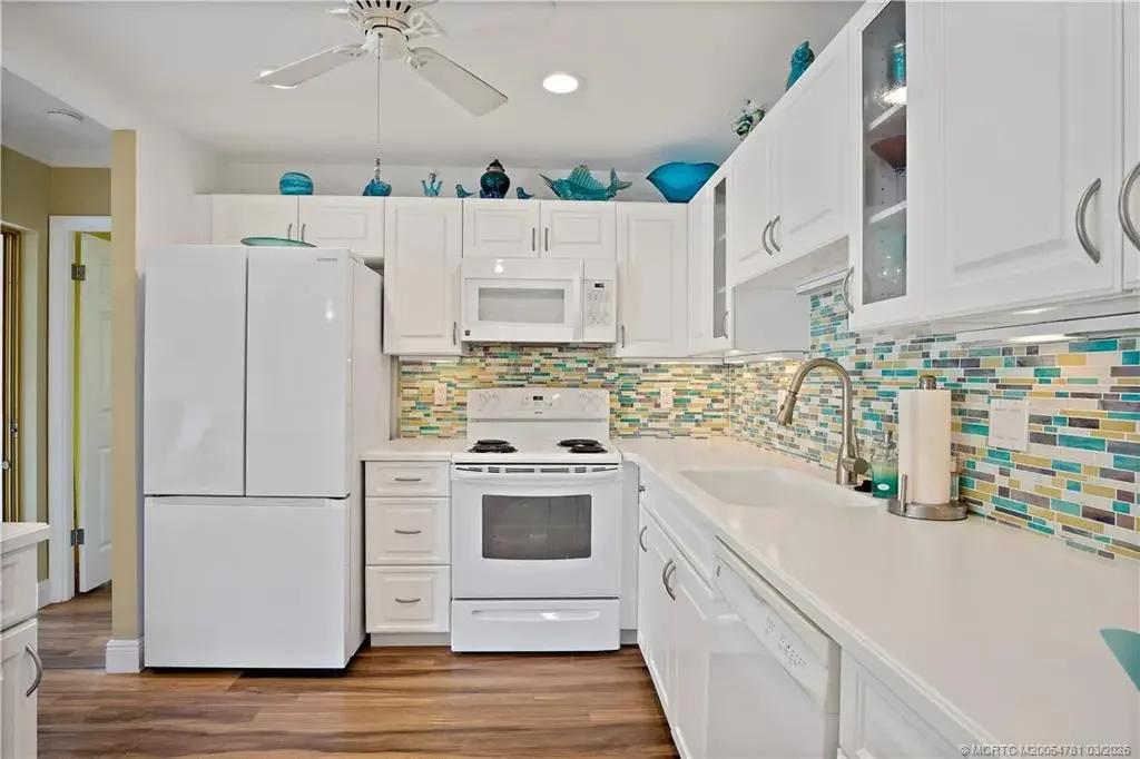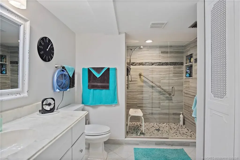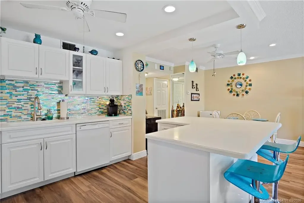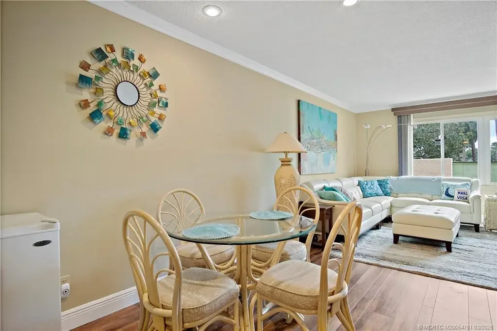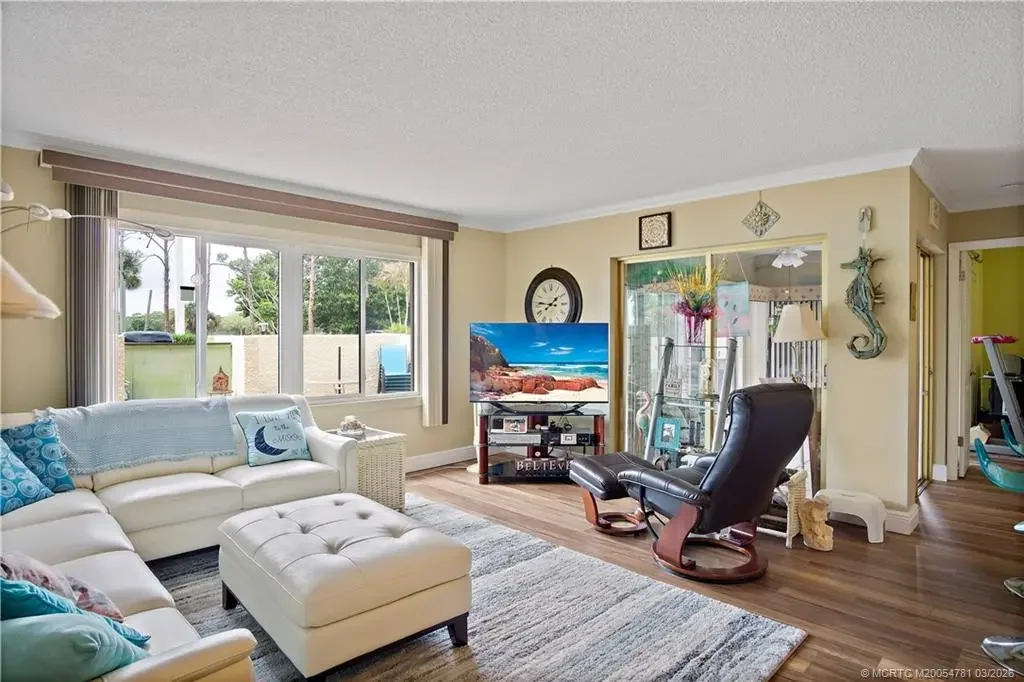 Don't miss this updated first floor condo that offers the option to entertain outside on the extra-large patio and inside around the extended kitchen island. Renovated kitchen, beautiful master bath, new flooring throughout, impact windows., accessible parking that allows owner to avoid the lobby Walk in closet. Community is in premier Stuart location and provides a fishing pier on the St. Lucie River, active clubhouse, pickleball, tennis, three pools, bocce ball, gym, library and it is next to Martin County Public golf course.