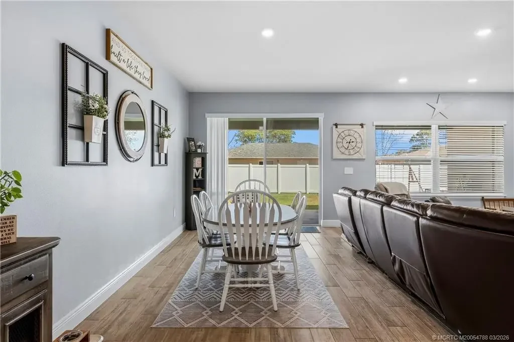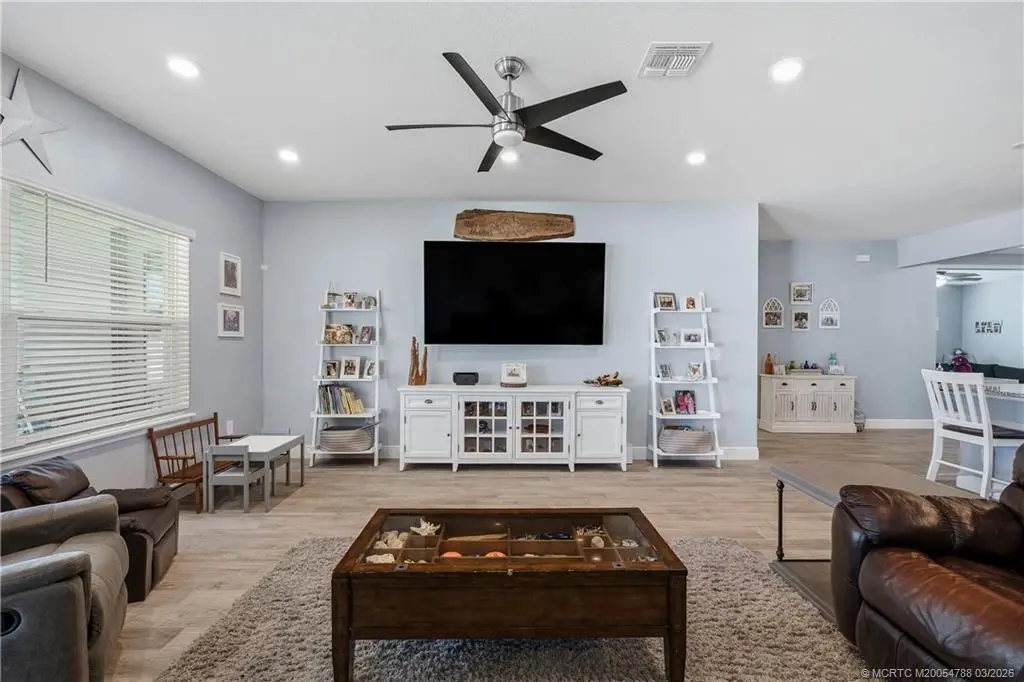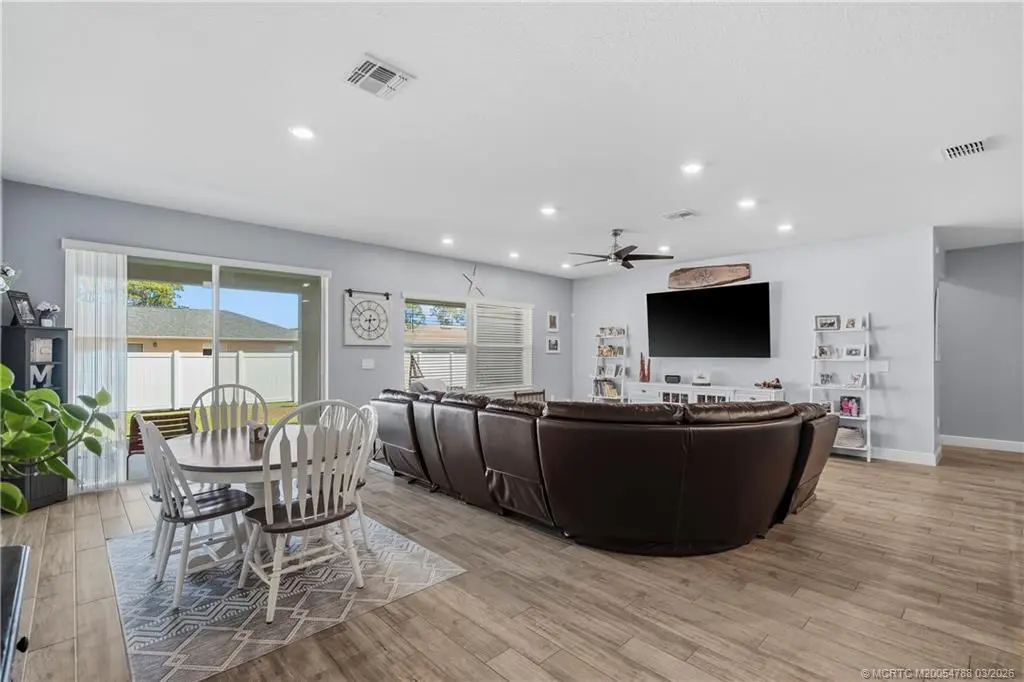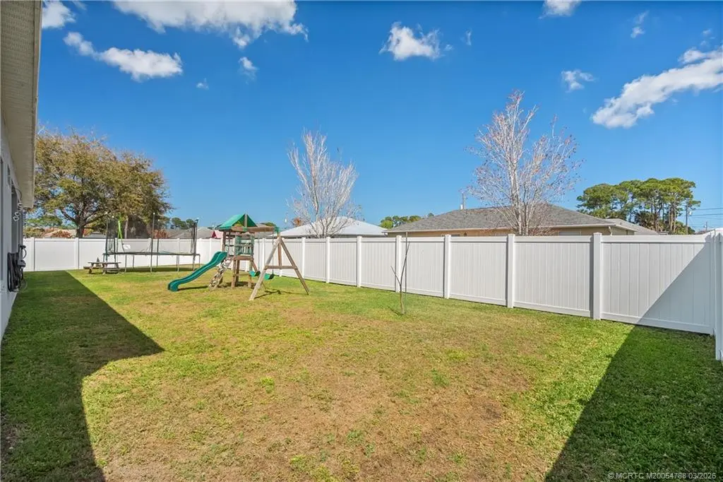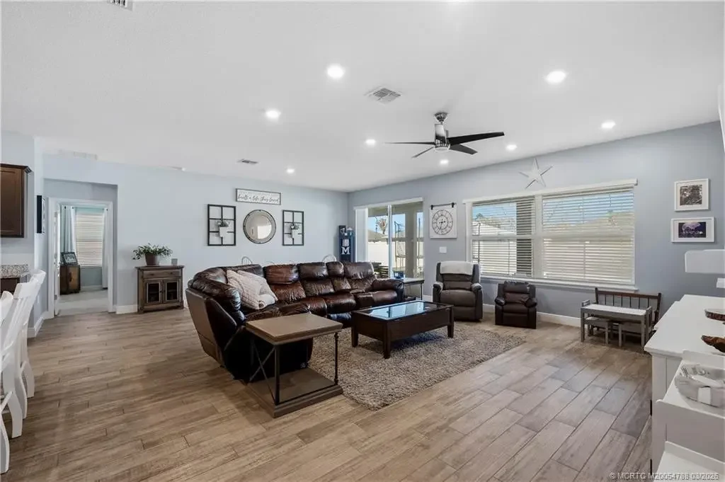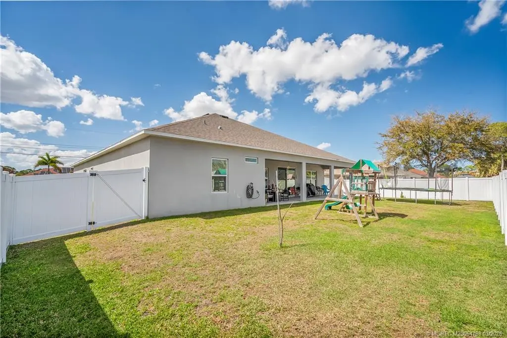 Discover this practically new stunning rare single story 5-bedroom, 3-bathroom residence, built in 2021. Featuring a luxurious cabana bath and impressive soaring ceilings, this open concept layout is perfect for modern living. The oversized rooms provide ample space, while the separate family room that offers versatility for use as a media room or additional living area. This property is constructed with durable CBS and boasts a large fenced-in yard with plenty of room for a pool. Enjoy outdoor living in the extended covered patio, perfect for relaxing or entertaining guests. The home includes a spacious three-car garage, making it an ideal choice for families. Located conveniently close to shopping, golf, and I-95, you will also have easy access to the beautiful Rosser Lake Preserve, which features hundreds of acres of trails for hiking, as well as opportunities for fishing, kayaking, and canoeing. Don’t miss the chance to make this your forever home!