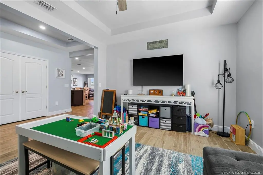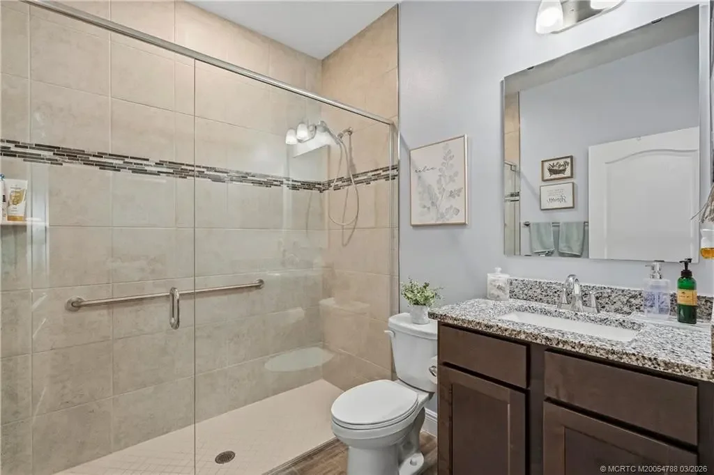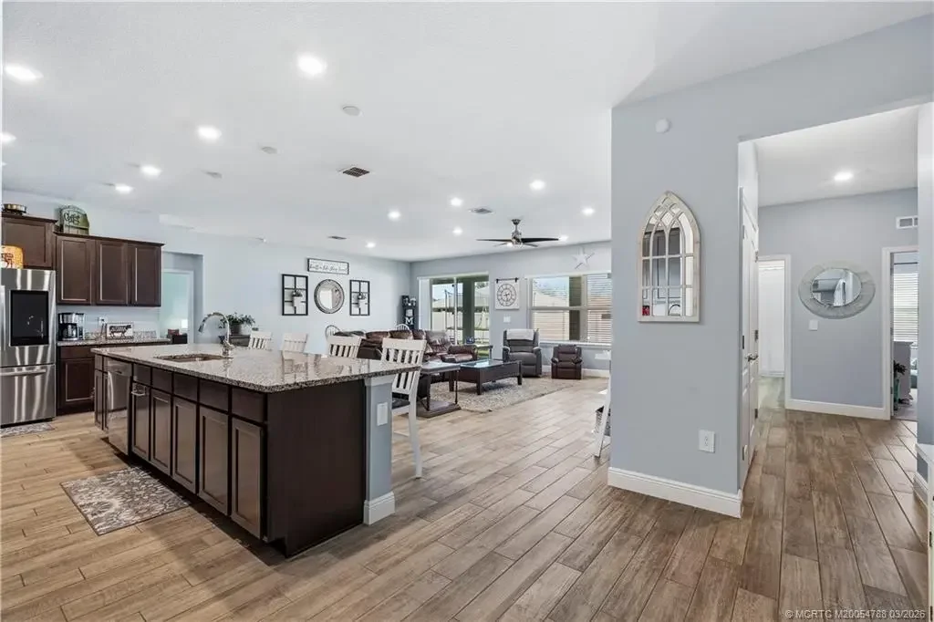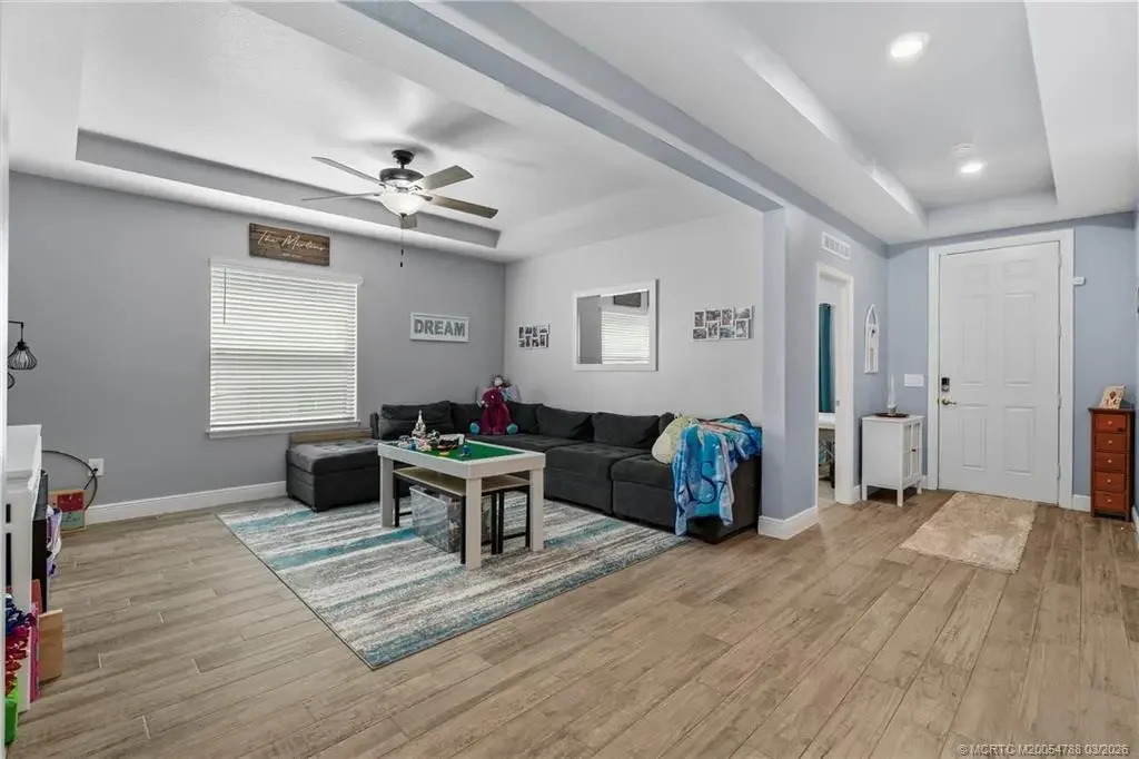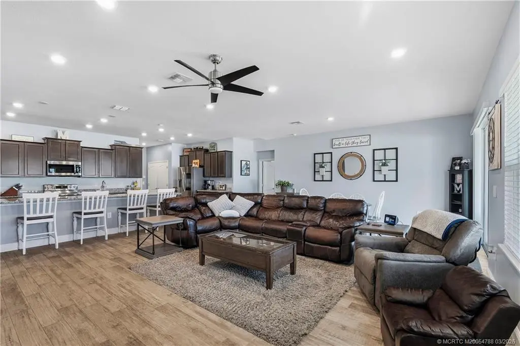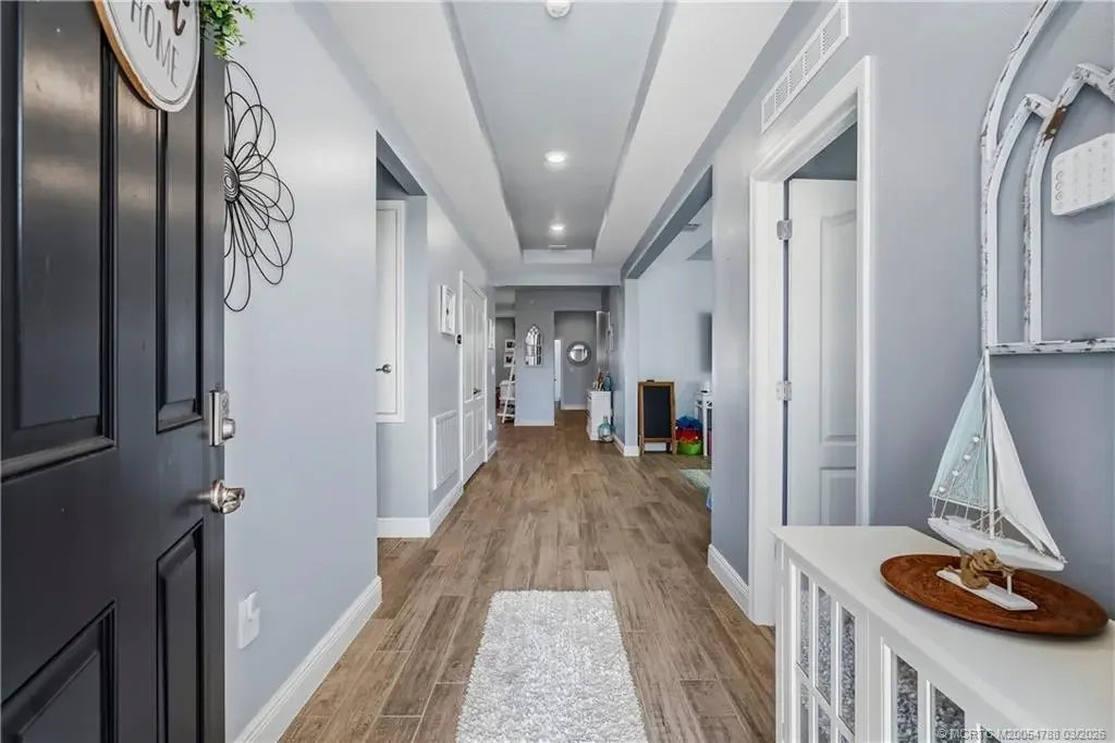 Discover this practically new stunning rare single story 5-bedroom, 3-bathroom residence, built in 2021. Featuring a luxurious cabana bath and impressive soaring ceilings, this open concept layout is perfect for modern living. The oversized rooms provide ample space, while the separate family room that offers versatility for use as a media room or additional living area. This property is constructed with durable CBS and boasts a large fenced-in yard with plenty of room for a pool. Enjoy outdoor living in the extended covered patio, perfect for relaxing or entertaining guests. The home includes a spacious three-car garage, making it an ideal choice for families. Located conveniently close to shopping, golf, and I-95, you will also have easy access to the beautiful Rosser Lake Preserve, which features hundreds of acres of trails for hiking, as well as opportunities for fishing, kayaking, and canoeing. Don’t miss the chance to make this your forever home!