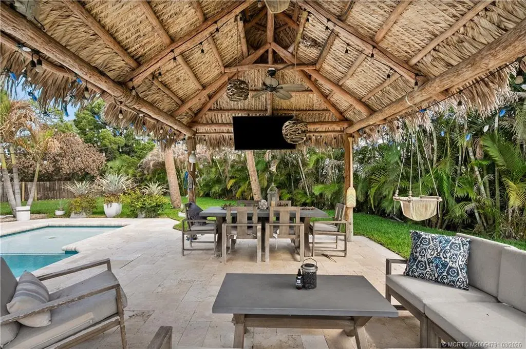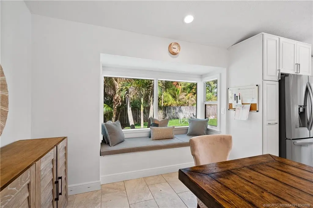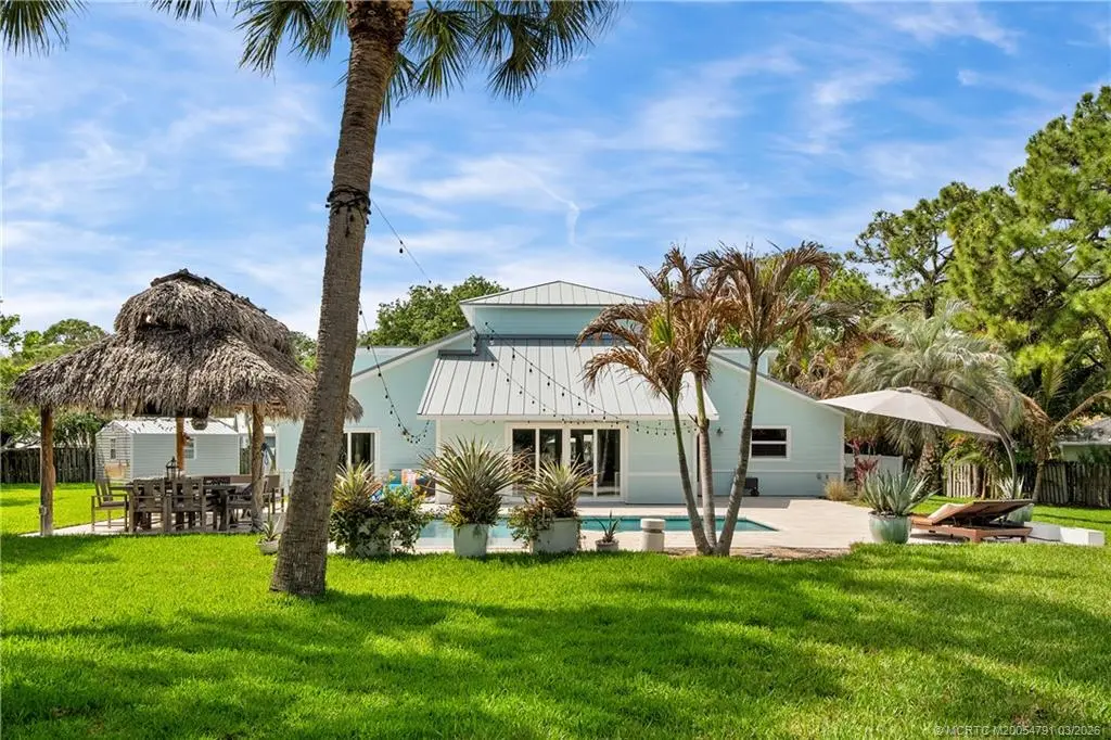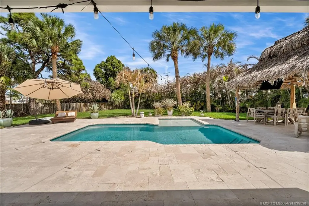 Discover this stunning three-bedroom, three bath former "Easter House," perfectly situated at the end of a peaceful cul-de-sac. This home has been beautifully remodeled, showcasing exquisite finishes throughout. The spacious kitchen is a chef's dream, featuring custom Kraft Maid cabinets with thoughtful built-in and pull-out features. You'll love the LG stainless steel appliances, sparkling quartz countertops, breakfast bar, and the elegant, crackled glass and stone backsplash. Additional highlights include a convenient dry bar and under-cabinet lighting that enhances the kitchen's ambiance. The luxurious master bedroom comes complete with expansive his and hers closets and a sliding door that opens to the inviting pool area. The master bathroom is a spa-like retreat, featuring a standalone tub, plantation shutters for added privacy, separate vanities for him and her, a spacious shower with dual shower heads, and a granite shower bench seat. Situated within the sought-after Palm City school district and with no HOA, this property boasts a half-acre lot that is the fully fenced, complete with a side gate, provides additional space for parking boats or RVs. This is a rare find in Palm City! Don't miss out on the opportunity to make this exceptional property your new home!