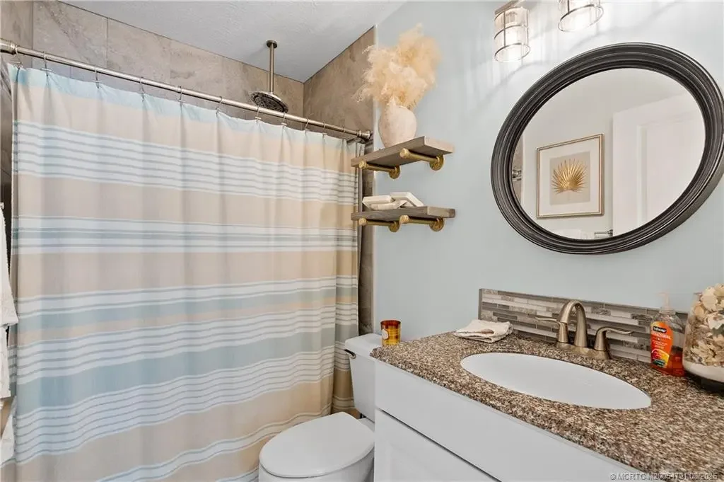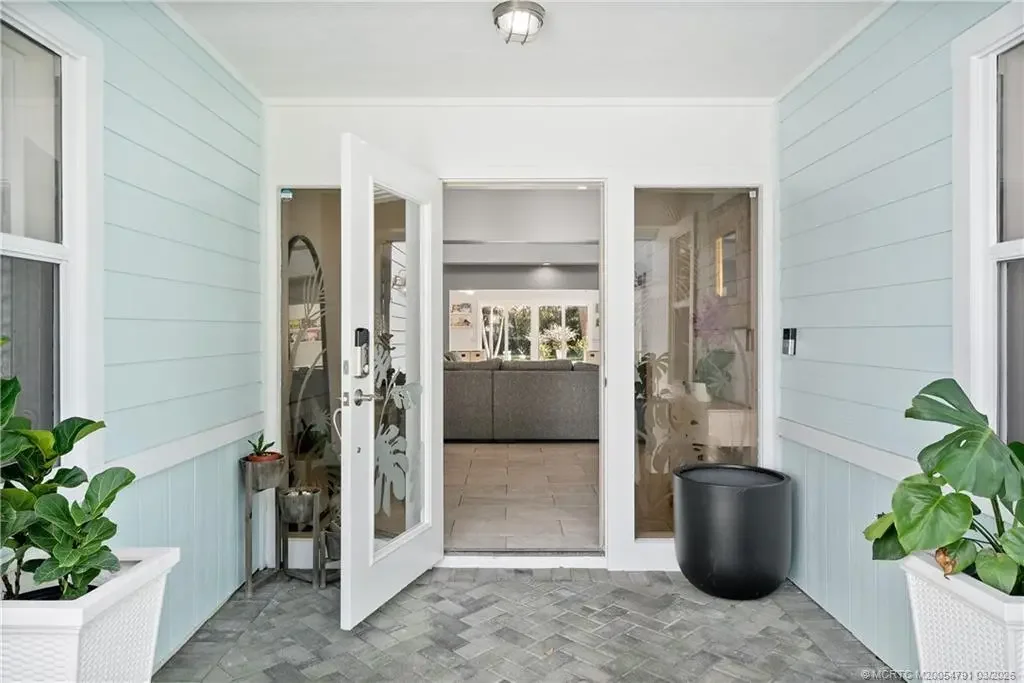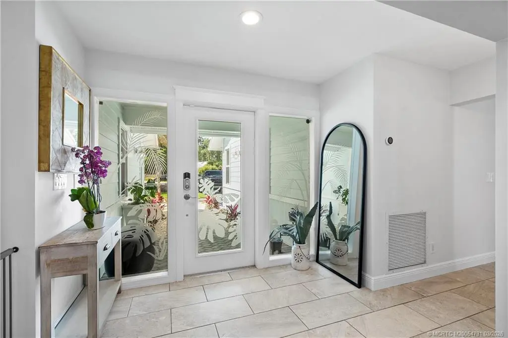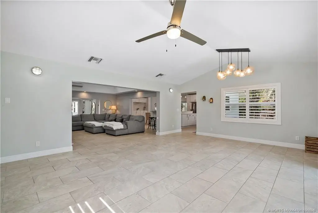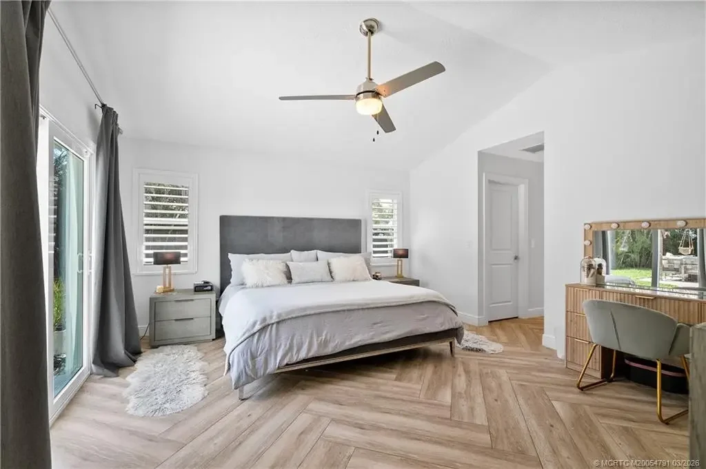 Discover this stunning three-bedroom, three bath former "Easter House," perfectly situated at the end of a peaceful cul-de-sac. This home has been beautifully remodeled, showcasing exquisite finishes throughout. The spacious kitchen is a chef's dream, featuring custom Kraft Maid cabinets with thoughtful built-in and pull-out features. You'll love the LG stainless steel appliances, sparkling quartz countertops, breakfast bar, and the elegant, crackled glass and stone backsplash. Additional highlights include a convenient dry bar and under-cabinet lighting that enhances the kitchen's ambiance. The luxurious master bedroom comes complete with expansive his and hers closets and a sliding door that opens to the inviting pool area. The master bathroom is a spa-like retreat, featuring a standalone tub, plantation shutters for added privacy, separate vanities for him and her, a spacious shower with dual shower heads, and a granite shower bench seat. Situated within the sought-after Palm City school district and with no HOA, this property boasts a half-acre lot that is the fully fenced, complete with a side gate, provides additional space for parking boats or RVs. This is a rare find in Palm City! Don't miss out on the opportunity to make this exceptional property your new home!
