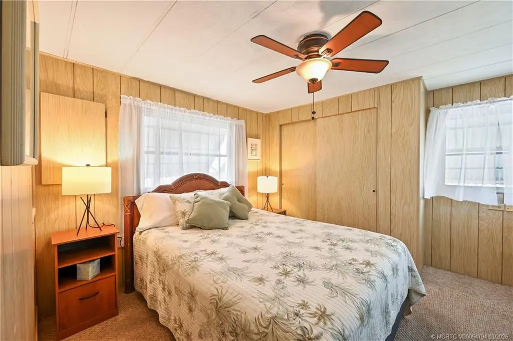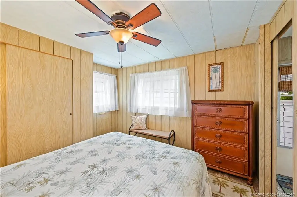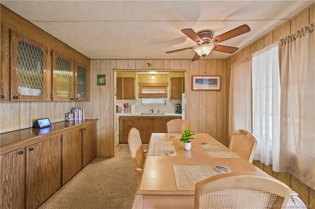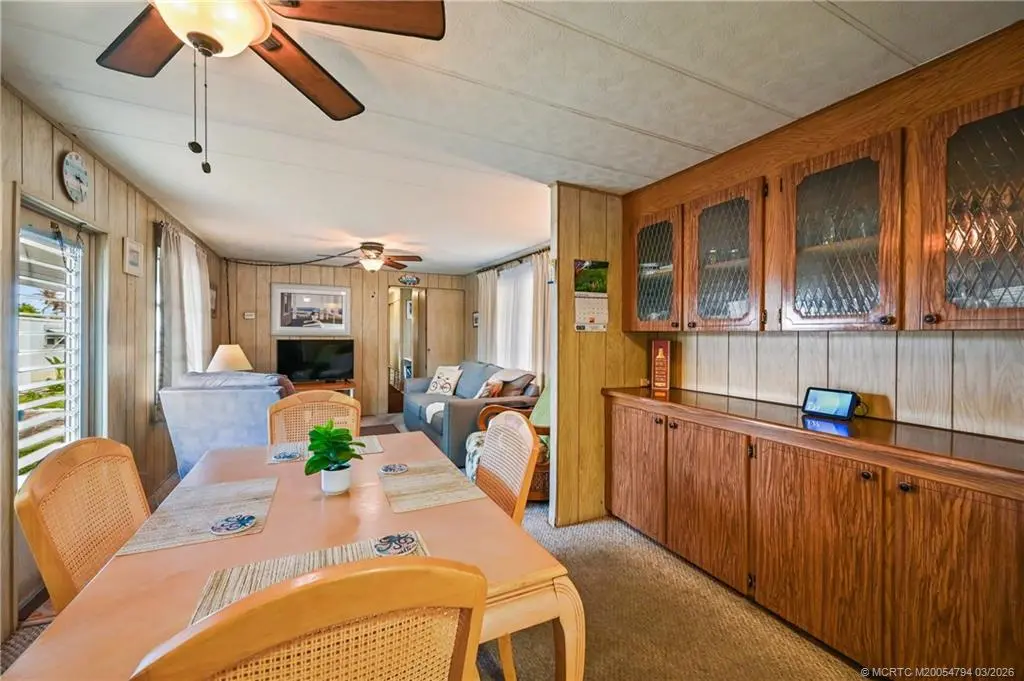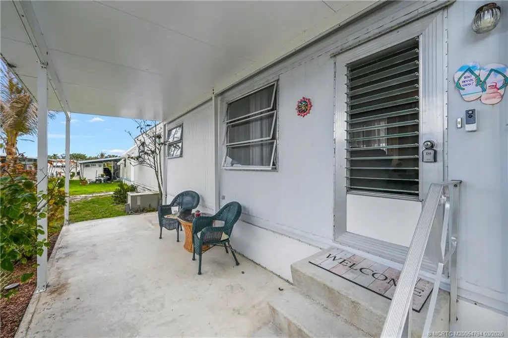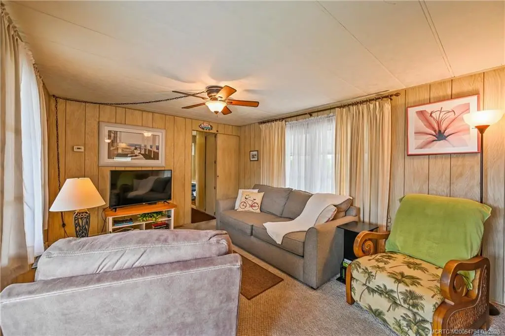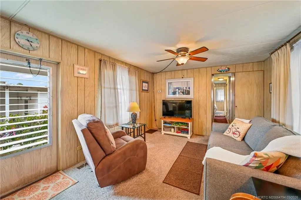 Fantastic opportunity !!Stop paying high lot-lease fees. This charming 2-bedroom, 1-bathroom home in the desirable Tropical Acres 55-plus community offers an exceptional value. There is NO LAND LEASE here, and the HOA fee is a remarkably low 164.50 per month. The home is sold turnkey and fully furnished, making it a perfect move-in ready retreat. It includes a rare 2-car carport for covered parking & extra storage. Residents enjoy a heated community pool and the unique benefit of on-site in parking for an RV or boat. The location is unbeatable, just minutes from the beaches and downtown Jensen Beach & also 10 minutes to charming historic downtown Stuart. Please note: 55-plus community, no pets, and no renting allowed. If you are looking for affordability and financial freedom in the heart of the Treasure Coast, this is it.