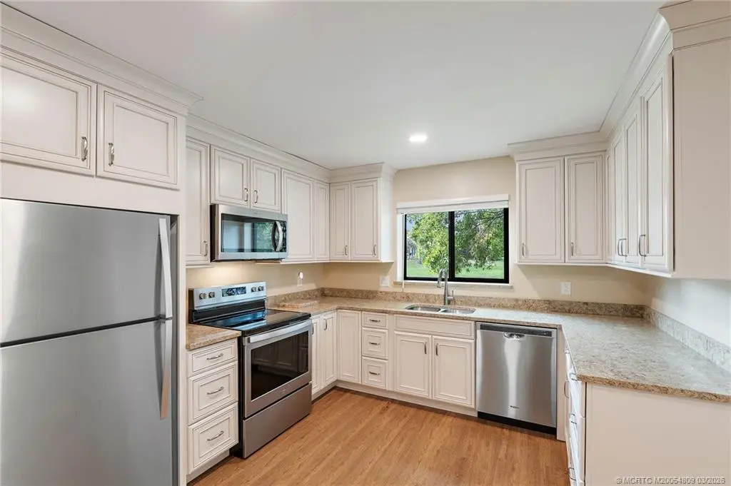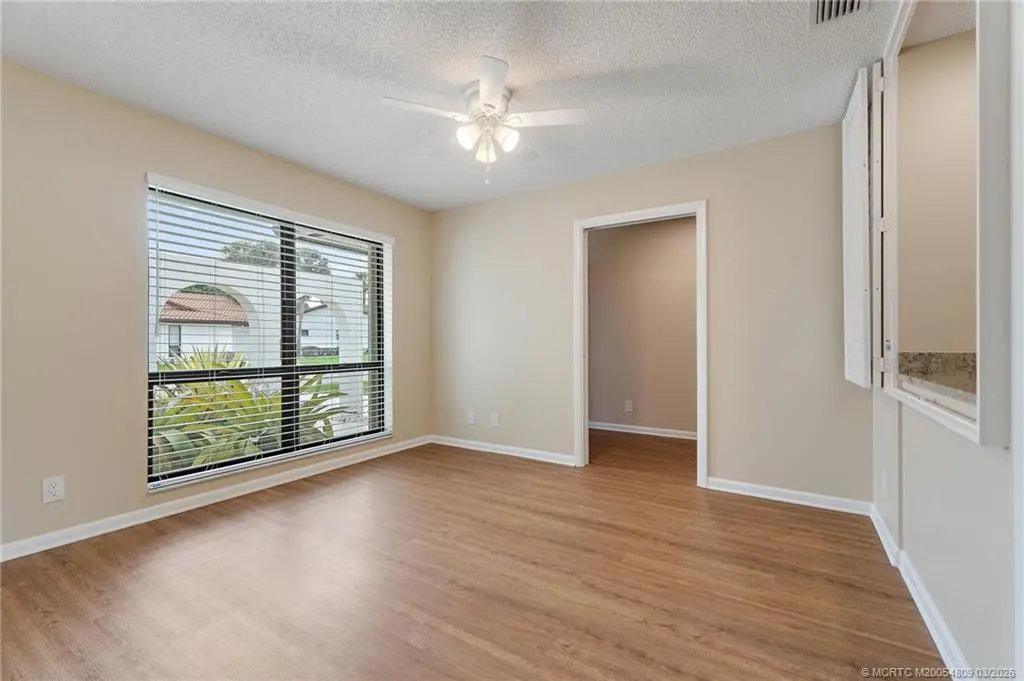 Welcome to this lovely villa set on a peaceful lake in the Osprey Creek neighborhood in Martin Downs. This home was thoughtfully renovated in 2021 including a completely updated kitchen, all new LVT flooring, updated baths (except shower and tub), all new impact glass windows & sliders, new roof, new water heater, and new garage door. All windows and doors also have roll down or accordion shutters, except garden window in kitchen which is impact glass. The floor plan was reworked to create a more open plan and the 3rd bedroom is currently configured as a den with custom Plantation shutters added to give privacy if used as a bedroom. This charming home is ready for you today! Memberships are available in the Village Club and Preserve, Banyan Creek Golf Club and Martin Downs Golf Club.