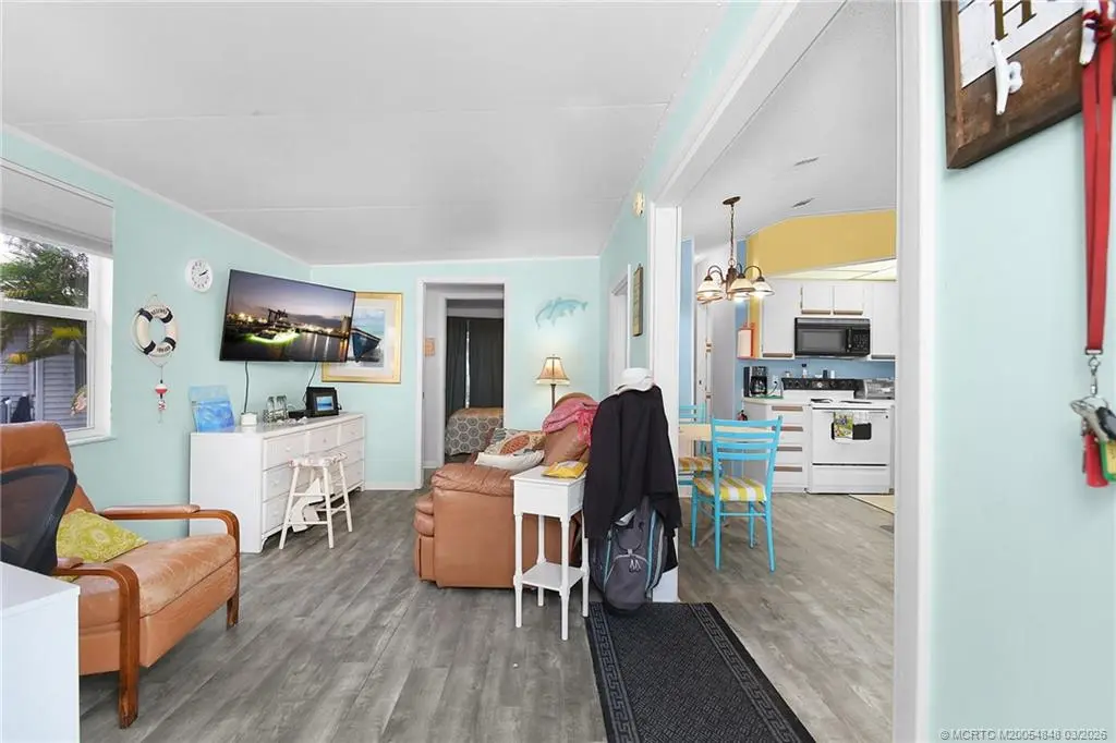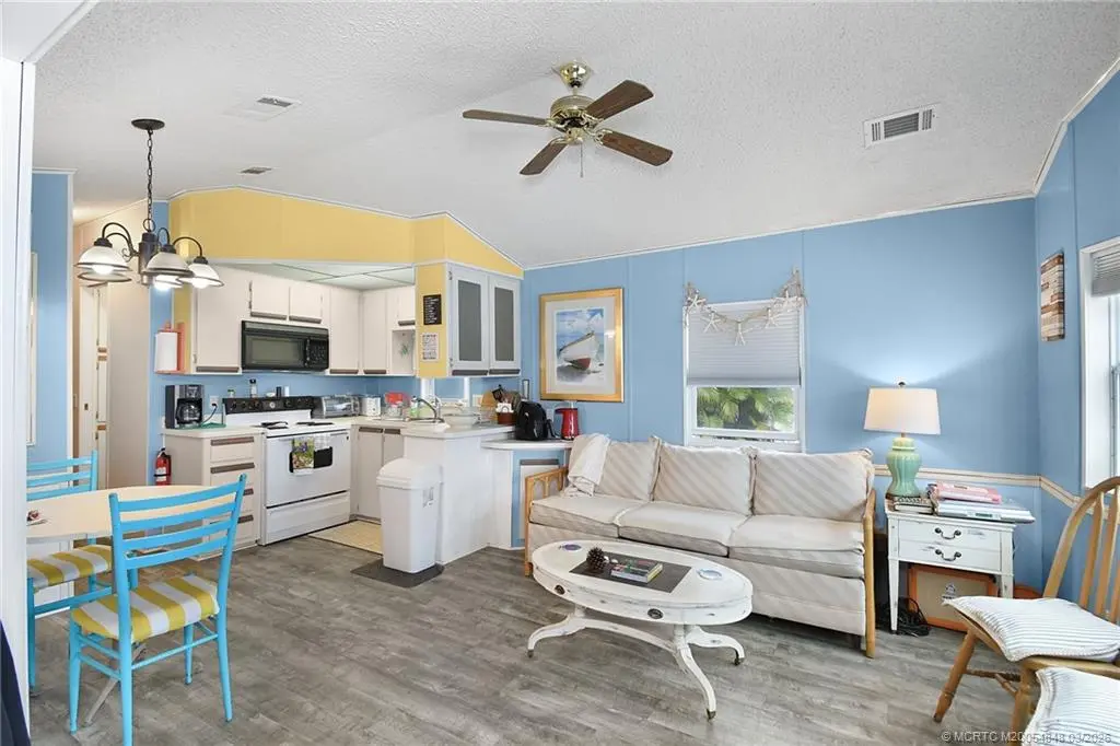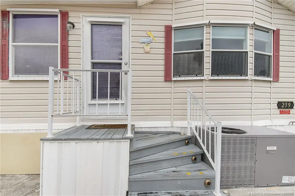 Holiday Out unit 259 is your chance to live that Island Lifestyle. This property has been very well maintained with a new metal roof installed in 2020, pavers installed in 2021, giving you a nice semi private patio area, newer floors throughout, and AC was replaced in 2024. This move in ready furnished 2 bed 1.5 bath is light and bright, and situated on a quiet one way street, with parking for two. Holiday Out is an active gated resort-style community, that offers an oceanside heated pool, shuffleboard, bocce ball courts, billiards, pickle-ball courts, horse shoes, beachside patio with gas grills, tables and umbrellas. Other amenities include Private gated beach access, Water, Sewer, Lawn Maint, Trash Pickup, and Basic Cable all for $305/monthly. This property is a perfect island getaway or investment opportunity with some simple rental restrictions. Whatever you do this property is a Treasure on the Treasure Coast. Easy to show.
