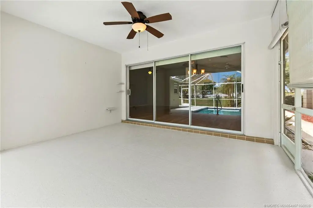 CBS Capri model in The Meadows, Palm City—2BR/2BA with split floor plan on a private cul-de-sac. Light, open living with tile and laminate flooring throughout. Updated kitchen features granite countertops and stainless steel appliances. Both showers have been tastefully renovated. Metal roof (2018) A.C. (2015) hurricane panels and 2-car garage. Enjoy your own screened patio and private pool overlooking a tranquil pond—perfect for relaxing or entertaining. Conveniently located in gated community near shopping, dining, and everyday amenities.