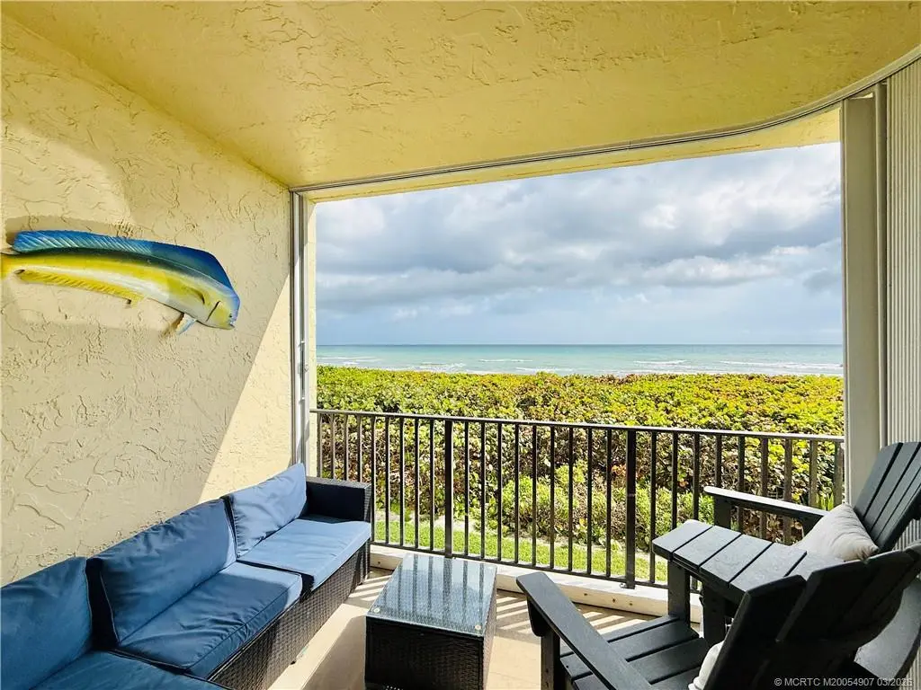 This beautiful 2nd floor OCEANFRONT condo is located in the extremely desirable community of Sanddollar Shores. Two bedroom two bath gem features an open lay out ideal for your relaxing coastal getaway. Fully equipped kitchen has everything you need to make you feel right at home. Listen to the sounds of the ocean waves on your own private balcony overlooking the ocean with mornings that bring the most breathtaking sunrises. Located next to pool and beach access, this condo is sure to please! Gated community boasts community pool, community room, fitness room, tennis/ pickleball, and much more! Come live the Hutchinson Island life! Condo available off season for $2,500/month and Jan-April 2027 for $5,200/month.