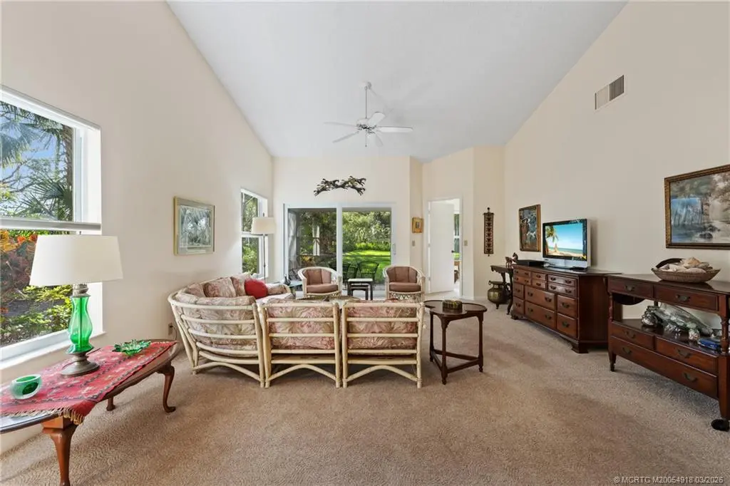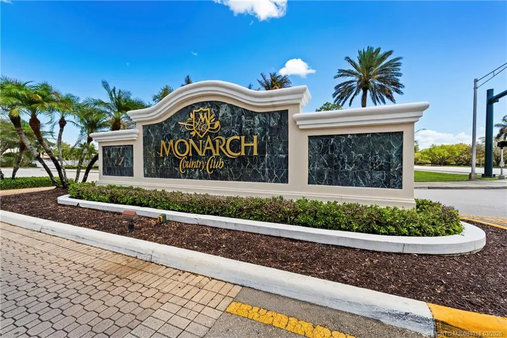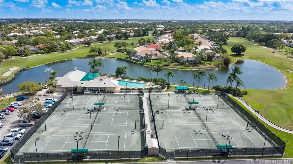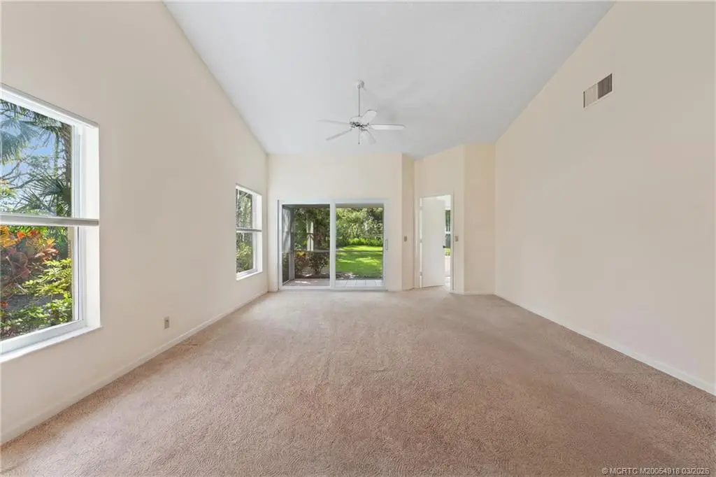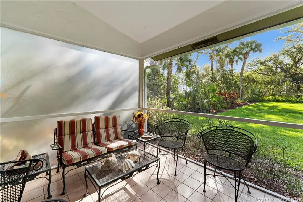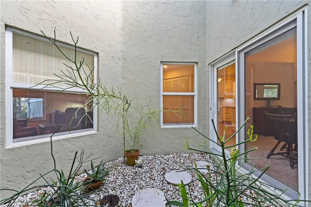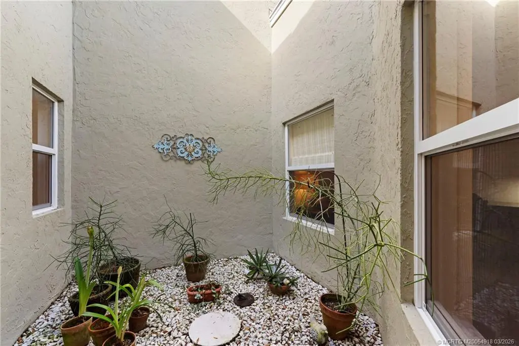 Welcome to Monarch Country Club, a gated community where this beautifully maintained 2-bed plus den, 2-bath end-unit villa offers the perfect blend of comfort, privacy, and low-maintenance living. Located on a quiet cul-de-sac and surrounded by green space, the home has a peaceful and private setting with exceptional outdoor living, including a sun-filled atrium patio and a screened patio with serene views. Step inside to a light-filled interior where the updated kitchen stands out with quartz countertops, wood cabinetry, cork flooring, and a large pantry. Thoughtful upgrades provide added value and peace of mind, including a 2024 tile roof, full impact glass, a 2024 electrical panel , and a 2022 water heater. The one-car garage has ample extra space for storage or a golf cart. Residents enjoy the ease of HOA living with services that include lawn care, roof and driveway cleaning, exterior painting every six years, cable, internet, and manned security. Monarch Country Club offers optional membership with access to golf, tennis, a resort-style pool and spa, clubhouse, fitness center, and bocce. Ideally located in Palm City near shopping, dining, I-95, the Turnpike, and A-rated schools, this home delivers a stress-free lifestyle with resort-style amenities right outside your door.