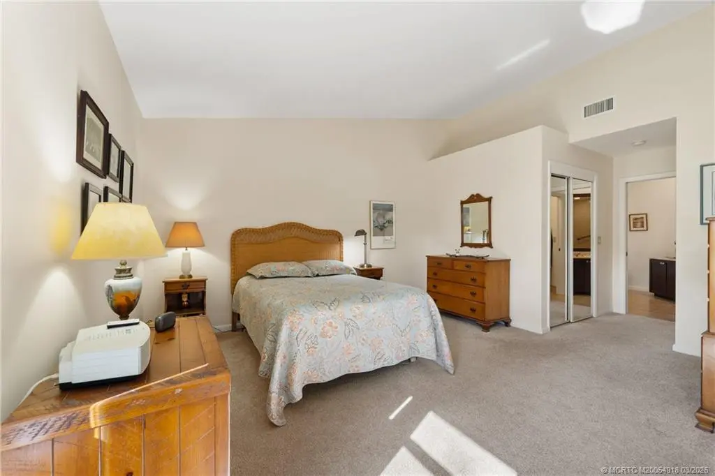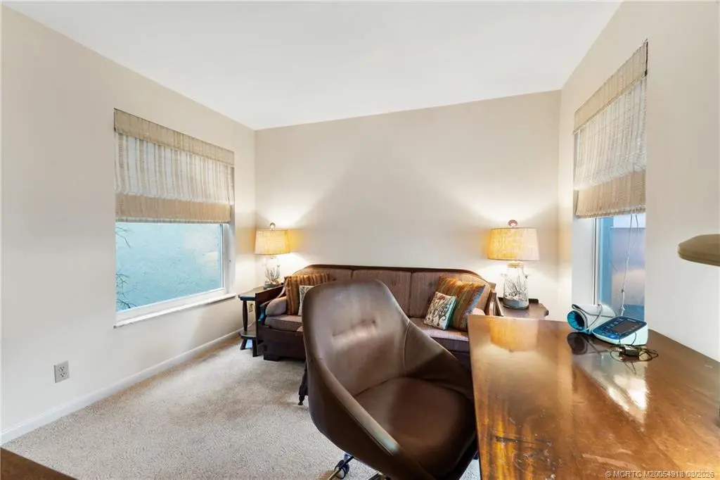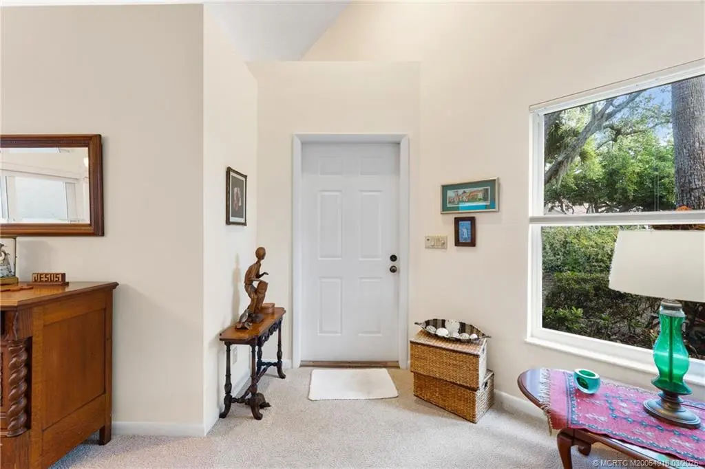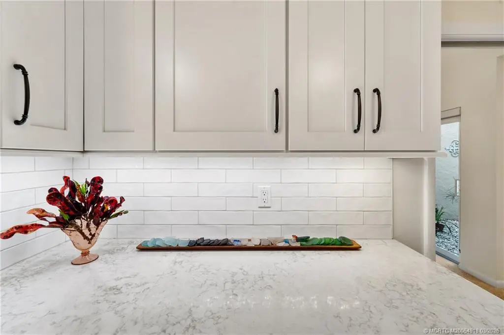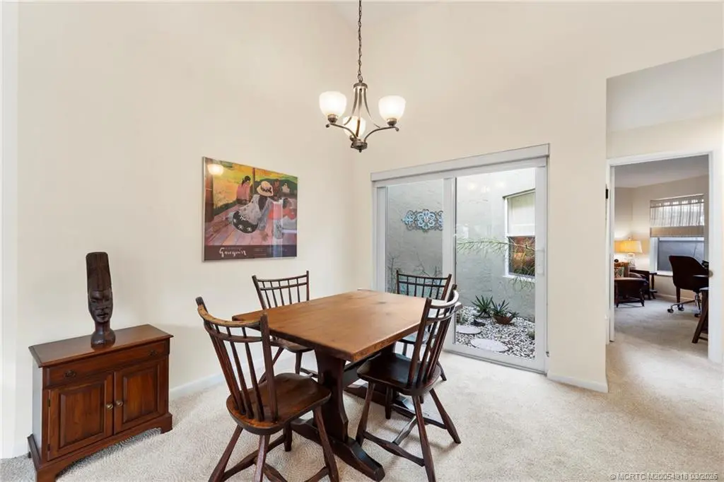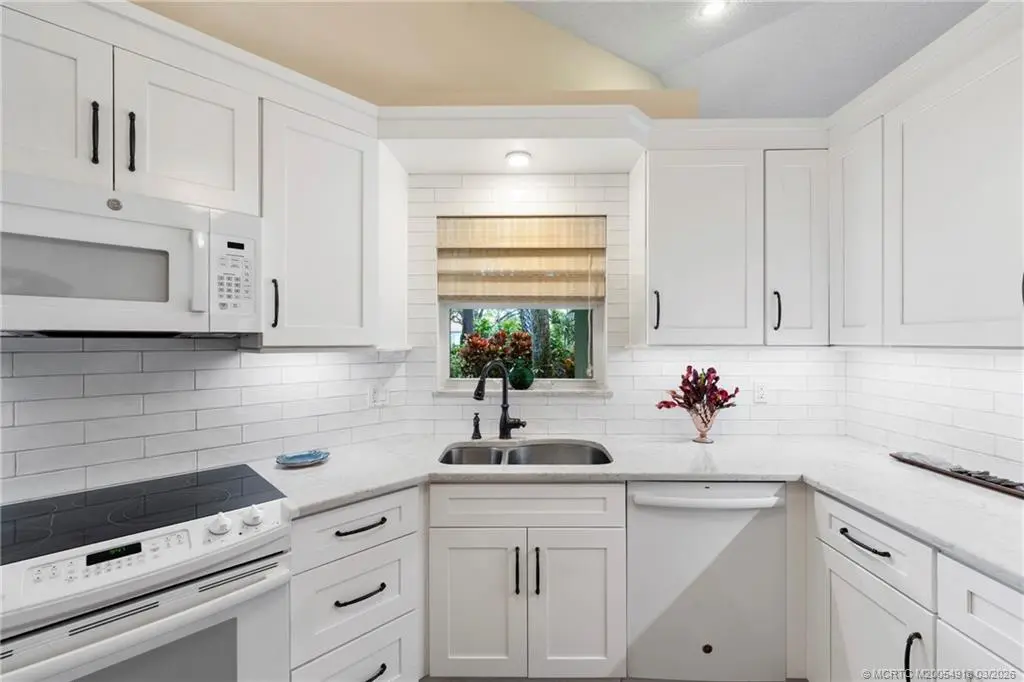 Welcome to Monarch Country Club, a gated community where this beautifully maintained 2-bed plus den, 2-bath end-unit villa offers the perfect blend of comfort, privacy, and low-maintenance living. Located on a quiet cul-de-sac and surrounded by green space, the home has a peaceful and private setting with exceptional outdoor living, including a sun-filled atrium patio and a screened patio with serene views. Step inside to a light-filled interior where the updated kitchen stands out with quartz countertops, wood cabinetry, cork flooring, and a large pantry. Thoughtful upgrades provide added value and peace of mind, including a 2024 tile roof, full impact glass, a 2024 electrical panel , and a 2022 water heater. The one-car garage has ample extra space for storage or a golf cart. Residents enjoy the ease of HOA living with services that include lawn care, roof and driveway cleaning, exterior painting every six years, cable, internet, and manned security. Monarch Country Club offers optional membership with access to golf, tennis, a resort-style pool and spa, clubhouse, fitness center, and bocce. Ideally located in Palm City near shopping, dining, I-95, the Turnpike, and A-rated schools, this home delivers a stress-free lifestyle with resort-style amenities right outside your door.