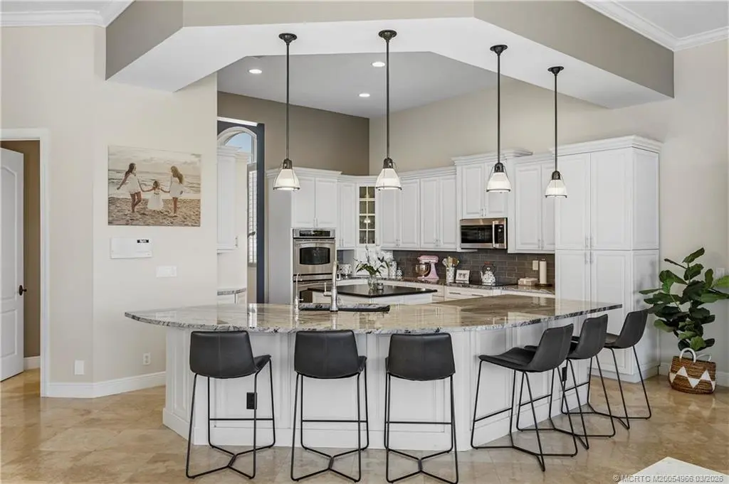 Welcome to your dream home! This breathtaking 4-bedroom, 4.5-bath residence in the prestigious Palm Cove community is a perfect fusion of elegance and modern comfort. The expansive open-concept design is ideal for entertaining guests, showcasing a beautifully updated luxury kitchen and a custom bar area featuring top-of-the-line finishes. Step outside to discover a fully updated pool area that resembles a private oasis. Marble pavers surround a sparkling pool, complemented by an outdoor kitchen equipped with a premium Coyote Pellet Smoker/Grill and a Hibachi for unforgettable alfresco dining experiences. Inside, every window is adorned with plantation shutters, enhancing the timeless beauty of the marble floors that flow throughout the home. Every detail has been meticulously crafted to exude luxury and sophistication. As part of the Palm Cove community, residents enjoy a wealth of amenities, including tennis courts, golf, a clubhouse with a pool, and a fitness center. There’s also a tot lot, meeting rooms, and a variety of fun clubs and social events to keep you engaged. Located just minutes from Historic Downtown Stuart, you’ll have access to fabulous shopping, dining, and theater options. The home is situated within top-rated “A” schools in Palm City and offers easy commuting access to I-95, the Florida Turnpike, and the beautiful, pristine beaches of Hutchinson Island. Don’t miss your chance to own this exquisite property—schedule your viewing today!